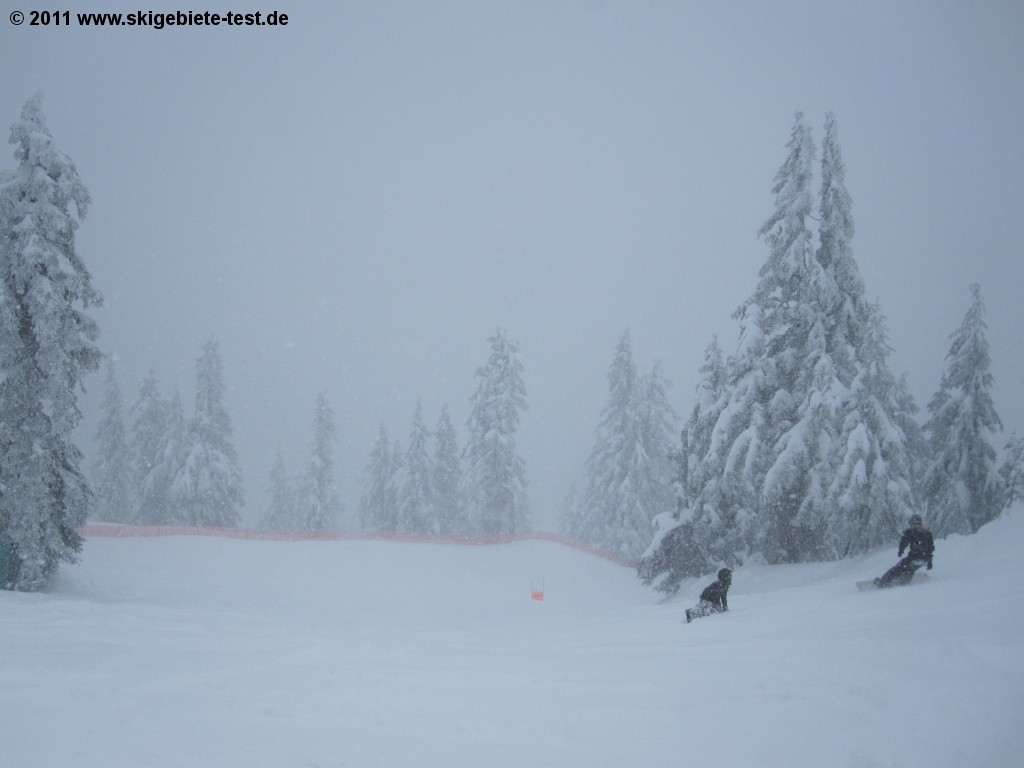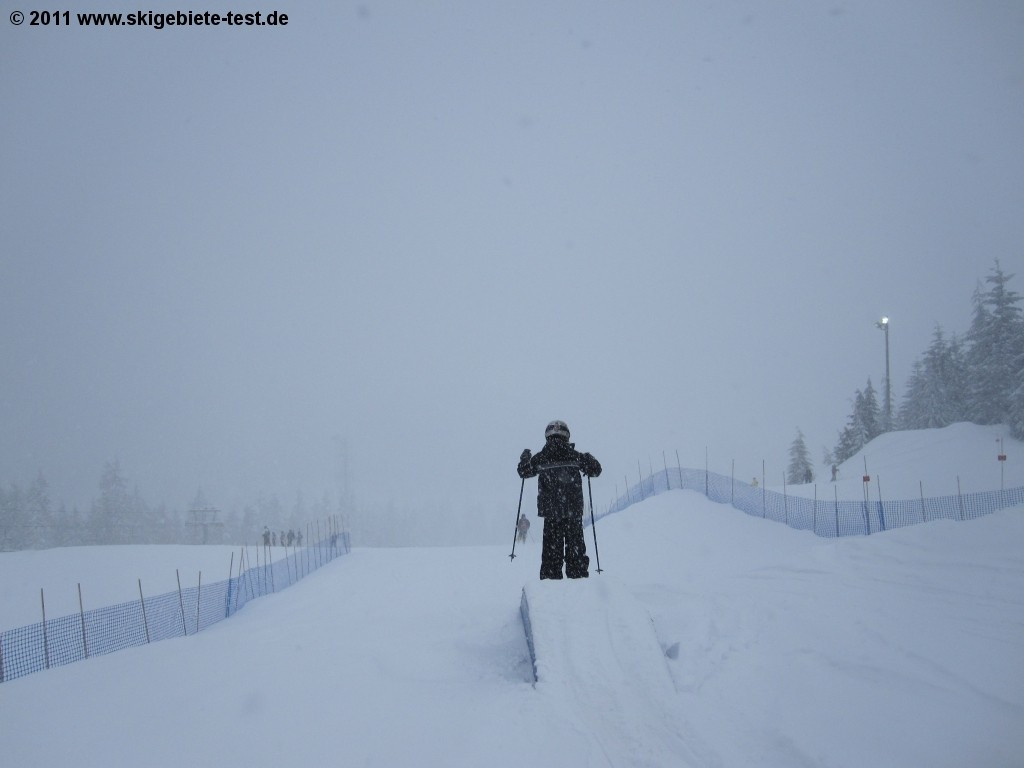 When being compared with its gigantic neighboring competition, Whistler, Cypress Mountain will have an extremely difficult time keeping up. It is, despite that fact, nonetheless an ideal choice for snowboarders for a quick, spontaneous trip to the slopes. Its many challenging (black and double black diamond) runs attract expert snowboarders in particular to the centrally-located resort, which is, after Grouse Mountain, Vancouver’s second “house” resort. We particularly recommend the glade runs on “Top Gun” in Black Mountain and the four black diamond runs next to the Raven Ridge chairlift in Mt. Strachan. Less-experienced boarders should stick to the “Panorama” and “Collins” trails. At the bottom of “Collins” you will find a small terrain park for beginners with a few small rails and jumps. More advanced park & pipe fans, however, do not have their own terrain park and must make do with the obstacles nature has provided. If it’s your very first time on a board, you can take the Easy Rider chairlift to the easy trail “Runway” and practice there. Cypress Mountain received a score of 3.5 stars in the Snowboarding category.