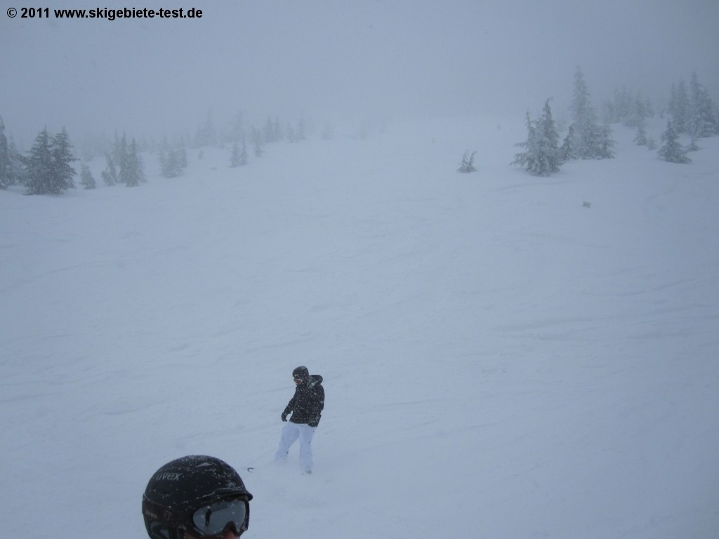 Cypress Mountain is the perfect destination for spontaneous winter athletes. If you’re looking out your window in Vancouver and thinking the weather would be perfect for a day on the slopes, a short, 35-kilometer drive will have you out there in a heartbeat. The two adjoining ski areas Black Mountain and Mt. Strachan have got something for every ability level. For intermediate skiers, we recommend the trails “Horizon” and “Crazy Raven.” Expert skiers here get the most bang for their buck, with most trails being either black or even double black diamonds. Many of those are also glade runs, a definitely plus for experts. Beginners and families with small children will find the perfect practice area around the Easy Rider chairlift. For parents ready to send their kids off to explore on their own, we recommend staying in the Mt. Strachan ski area, where every trail ends at the Creekside Lodge. The restaurant in Creekside Lodge is also a good choice for a quick snack in between runs or after a long day on the slopes. One thing Cypress Mountain does not have to offer, however, is real après-ski, and Cypress Creek Lodge is the only hut in the entire ski area. One advantage it does have, though, is its proximity to the city of Vancouver, which is a short 35 kilometers away. In the city you should have absolutely no problem finding plenty of places to let your day on the slopes go out with a bang.