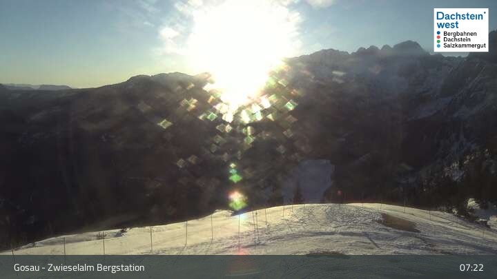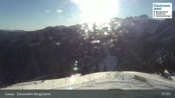 Located at Zwieselalm top station, this webcam shows the view of Törleck and Dachstein Glacier
