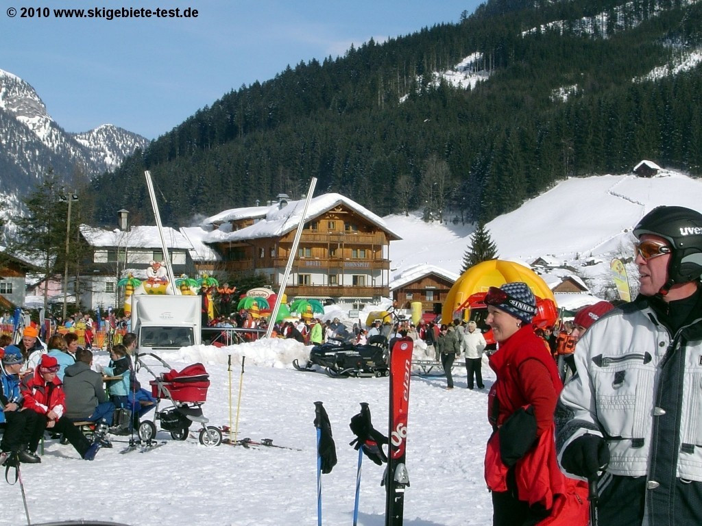 The ski resort Dachstein-West is one of the best family destinations in the Salzburger Land. First and foremost Dachstein-West is one of the largest family skiing areas and offers family-oriented pricing as well as the possibility to drop off the kids at the ski school. One of the big family advantages is the fact that every child under the age of six skis for free!! The local ski schools will introduce every beginner no matter how small to the winter sport of his or her preference. Furthermore two kids parks (“Sumsiland” and “Bärenland”) situated at the base areas Russbach and Gosau, will make chances high that your kids may never want to leave. The 9 easy and 24 intermediate slopes offer great variety which fits the novice as well as the advanced skiers needs. Only very skilled parents will miss challenging slopes at this ski resort. There is also the possibility to drop off the kids, if they are at least one year old, at a nursery station for several hours or even for the entire day. Professional nannies will take excellently care of your children and if desired kiddies can have lunch there as well. For those staying at an accommodation in Russbach this service is even free of charge. The only thing parents shouldn’t do is to let the kids go skiing on their own because of the big dimension of the ski resort. But families will find a perfect nursery for their children and therefore perfect conditions for a family dream-come-true vacation at Dachstein West.