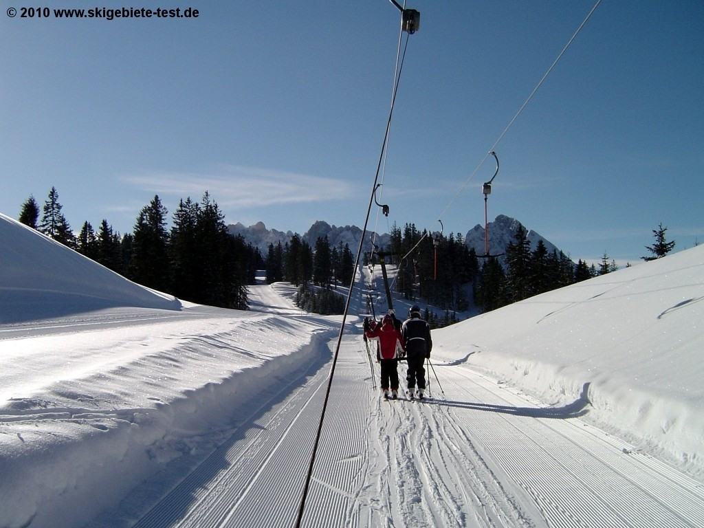 The ski resort offers only 3 demanding runs. The remaining runs are marked as intermediate slopes but are mostly quite easy. Therefore there is solely a very limited array of slopes which fit the expert skiers needs. However when snow conditions allow the very skilled winter athlete will find beautiful off-piste runs at the spots Gosau, Russbach and Annaberg. Furthermore a permanently ungroomed slope is available, which enables a safe free-ride adventure. Because of the fact that the inter-connecting lift facilities are mostly tow lifts or rather slow chair lifts the time you spend going uphill is sometimes very long. A positive aspect however is that all demanding trails are all situated in one corner of the ski resort Dachstein West. Therefore the expert skiers don’t have to search for the slopes of their preference.