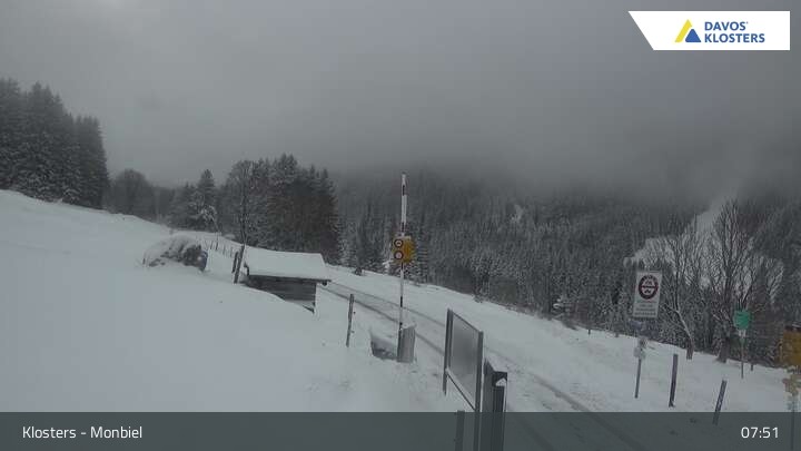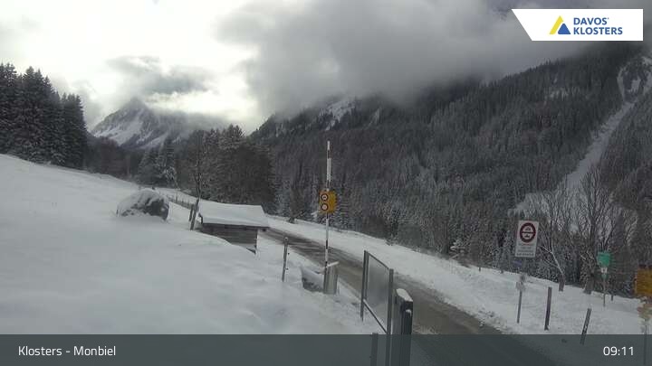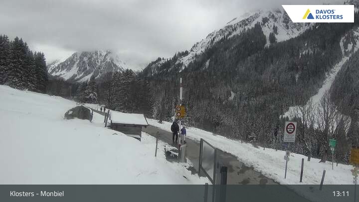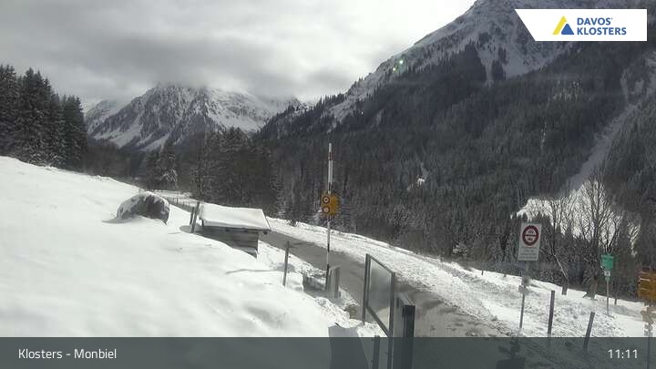 This webcam is located at the car park in Monbiel near Klosters. It looks upon the surrounding Alps, where the Davos - Klosters ski area boasts numerous opportunities for winter sports.