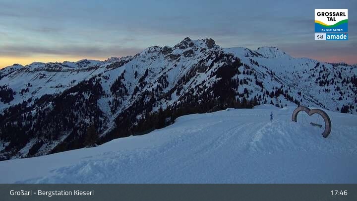 Archived webcam image showing Grossarl: Top Station Kieserl on 26 Feb 2026 at 19:32 18:00
