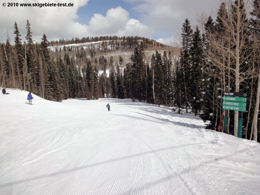 The Durango Mountain Resort up mountain from Purgatory has made families its focus, clearly distinguishing it from the larger Colorado resorts. The ski school is located in the Village Center building and offers half as well as full-day childcare. Parents hoping to explore the ski area and the surrounding San Juan Mountains together with their kids can start the day off on the practice slopes serviced by the Graduate and Columbine triple lifts below Purgatory Village. Then it's off to the easy trails off the Twilight and Engineer lifts. If your kids are already a bit more experienced, you should be able to ski the intermediate (intermediate trails are marked blue in the USA) trails off the Hermosa Park Express and Grizzly lifts without any problems. Basically, Durango doesn't leave any wish unfulfilled for families. It's only if you're planning on staying for over a week that you might find the trail selection a bit limited.