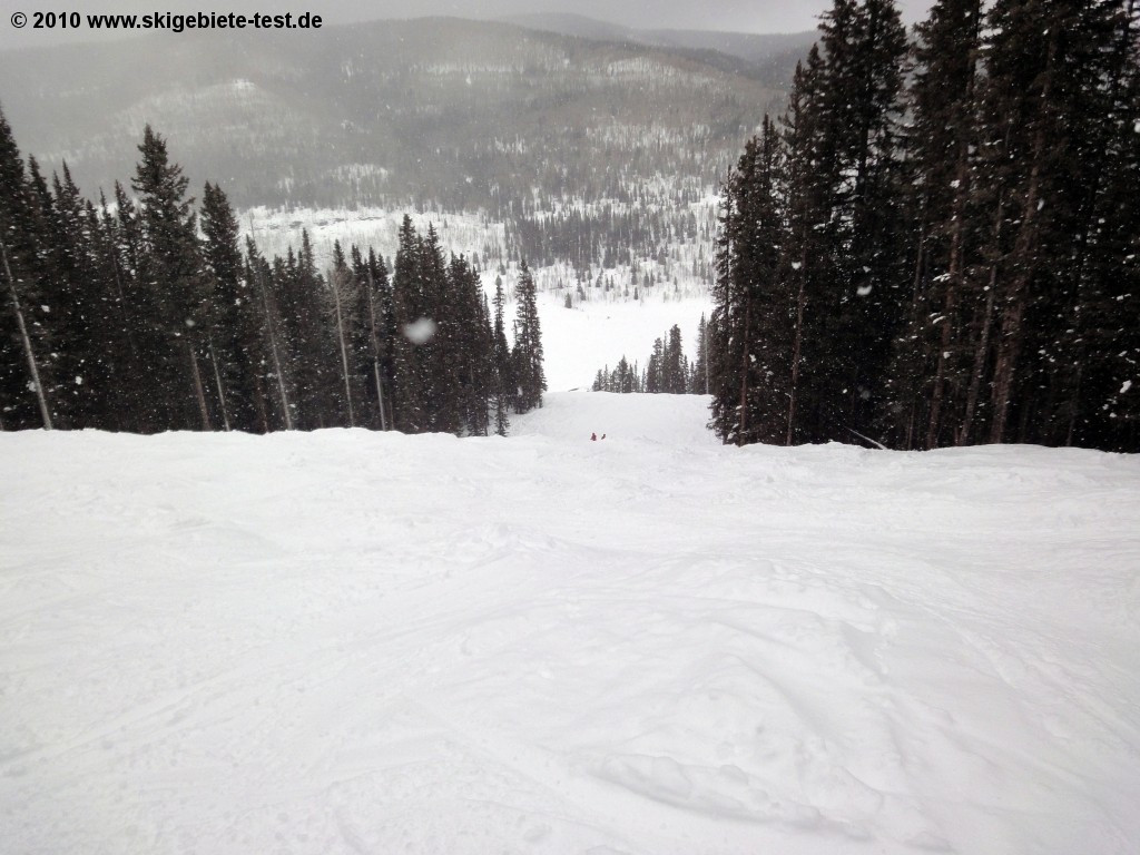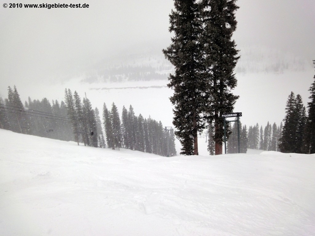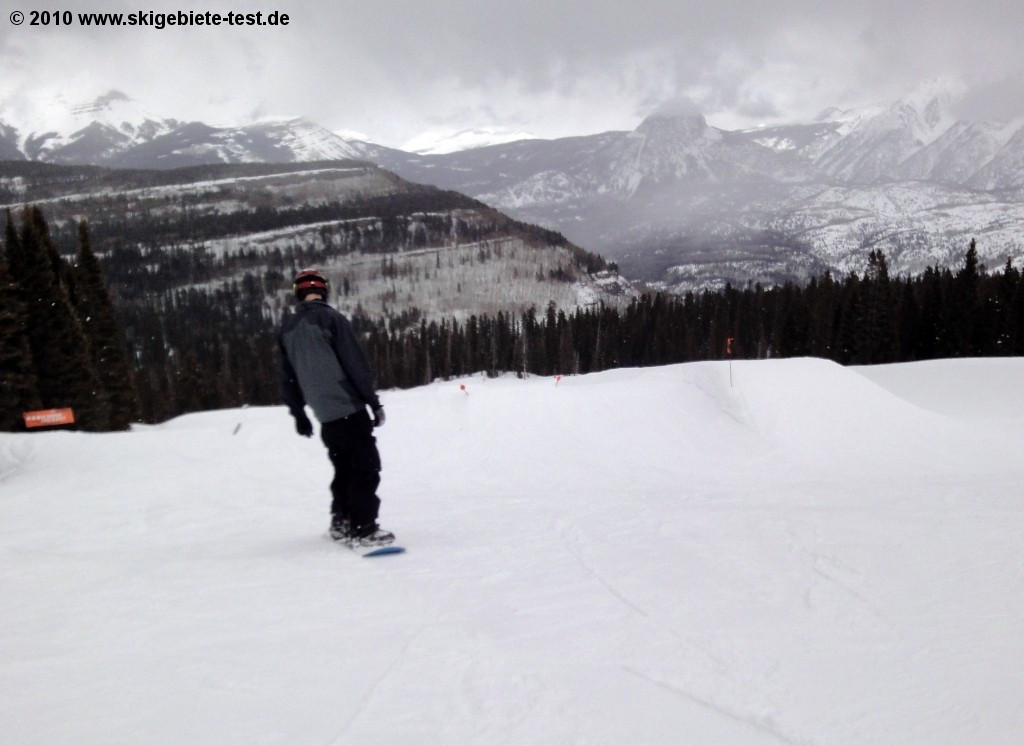 Durango Purgatory has pretty much everything a snowboarder could wish for. Down mountain from the Powderhouse (the restaurant at the upper terminal of the Engineer lift) they've installed a nice halfpipe on the Pitchfork trail. Just below the restaurant are a few small kickers. For more, check out the Paradise Freestyle Arena at the upper terminal of the Needles lift, where you'll find the more challenging kickers and rails. Up mountain from the base terminal of the Purgatory Village Express is another terrain park especially for the more advanced snowboarders. Unfortunately, Purgatory does have one huge disadvantage: the entire ski area is located below the tree line, so you won't find any wide open powder runs. What you will find is a balanced selection of easy slopes off the Twilight lift and intermediate slopes between the Hermosa Park Express and Legends lift in the western part of the ski area. There are also a few exhilarating tree runs through the San Juan National Forest. Basically, as is true for skiers, beginner and intermediate snowboarders won't get bored quickly at Durango. It's the more advanced skiers and boarders who may not be satisfied with the limited selection of black diamonds.