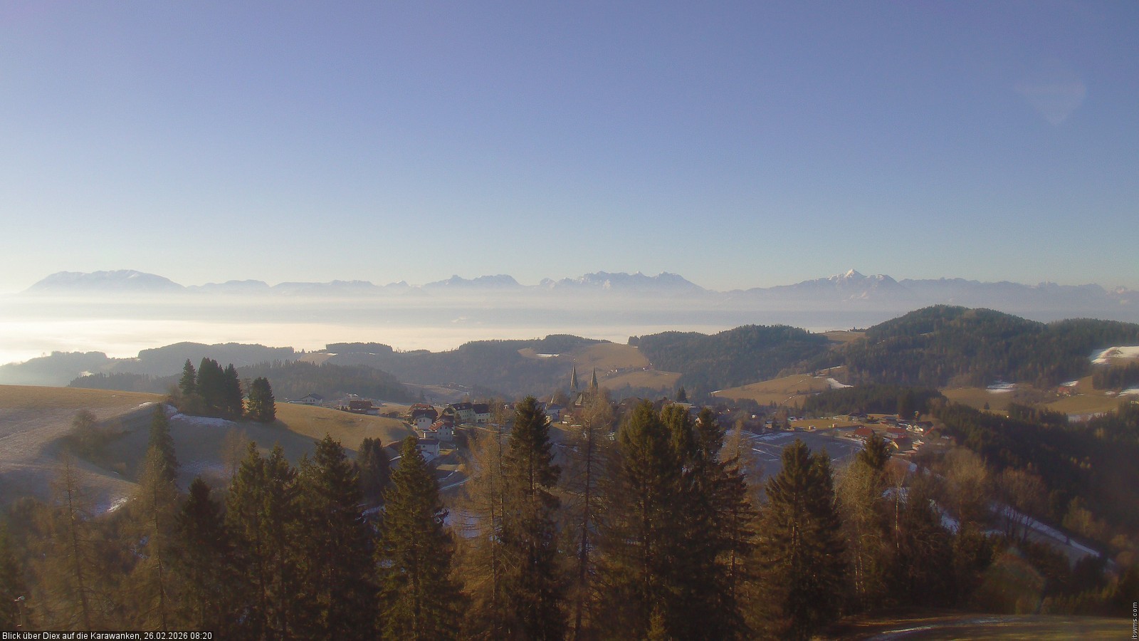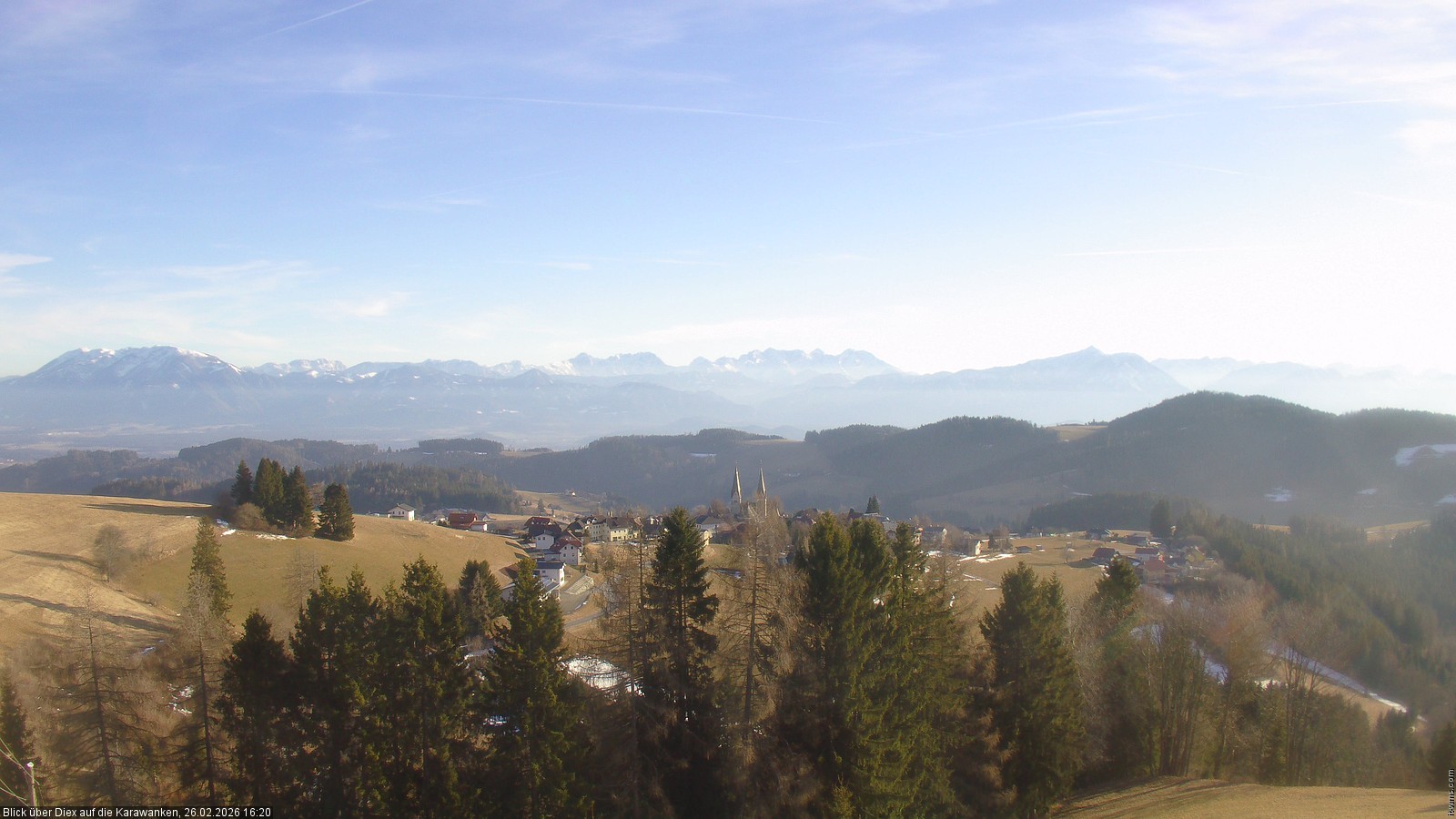 Webcam shows the village Diex in Carinthia, Austria , in the background the mountain range Karawanken.
