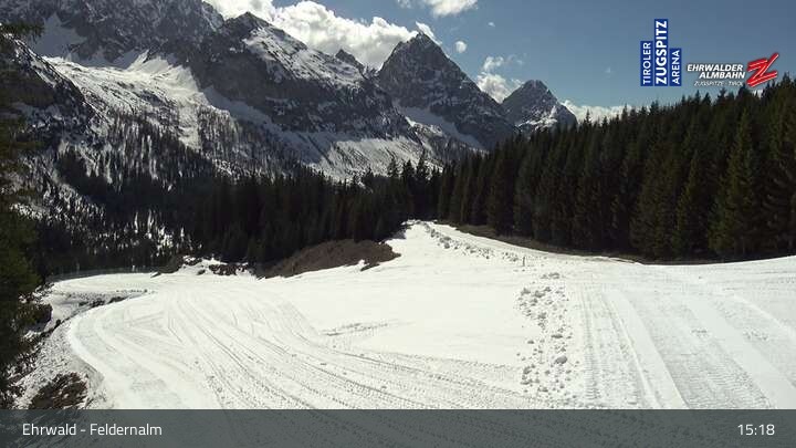 Archived webcam image showing Feldernalm in Ehrwald - Zugspitze on 15 Apr 2026 at 17:34 16:00