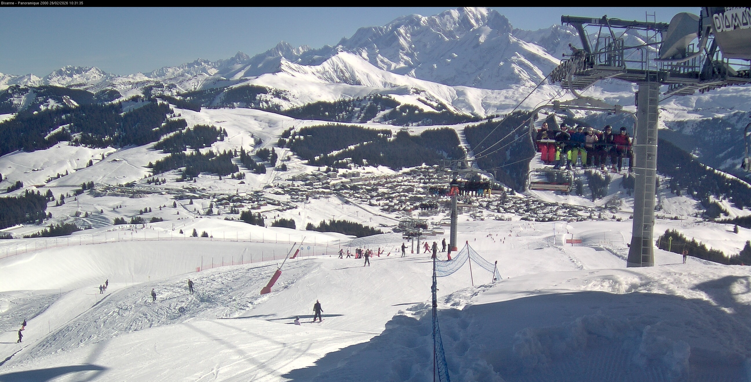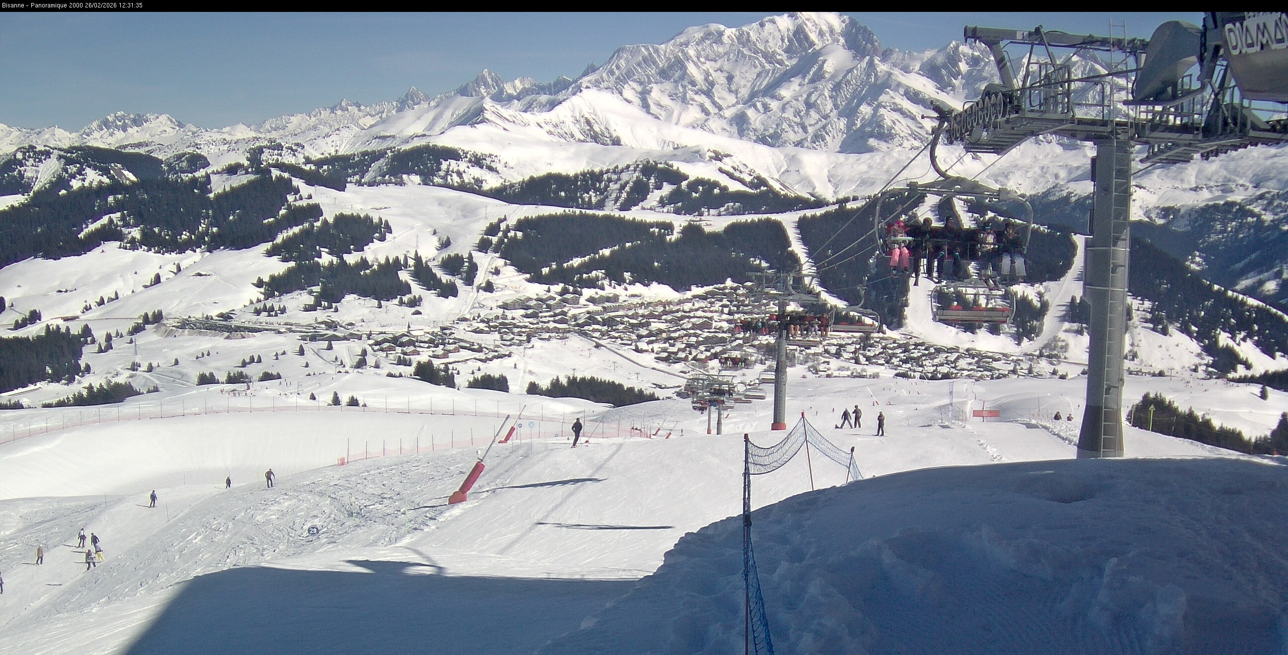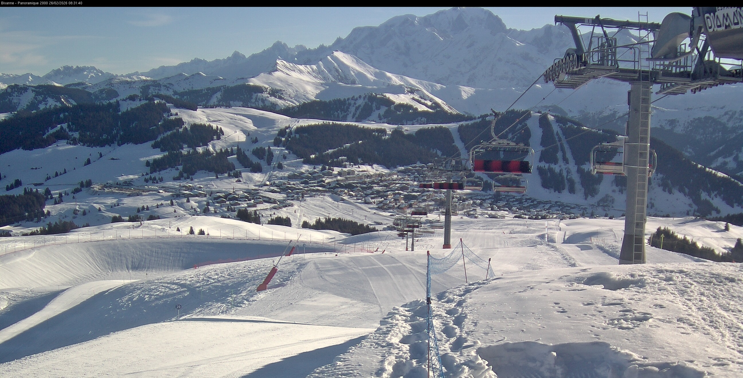This webcam offers the view from top sation of chairlift Bisanne towards french village Les Saisies and slopes of the ski resort.