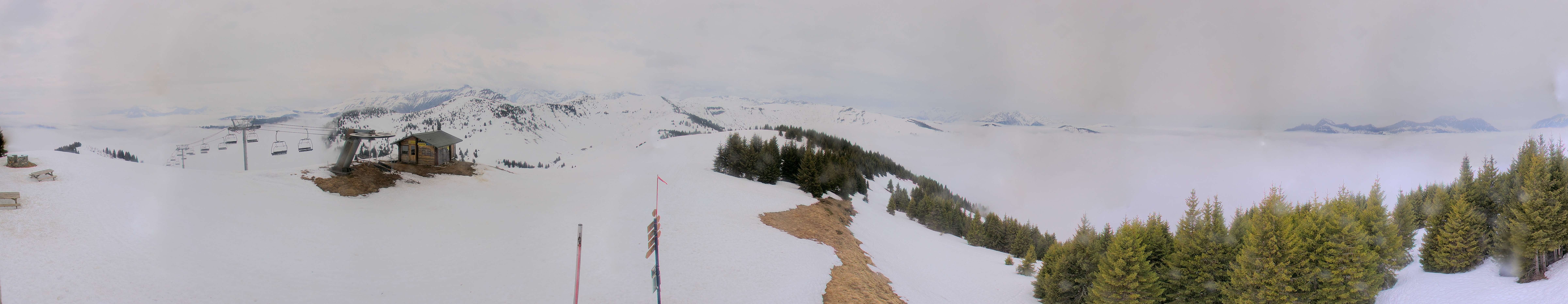 Archived webcam image showing Notre Dame de Bellecombe - Top station chairlift Ban Rouge on 12 Apr 2026 at 10:05 09:00