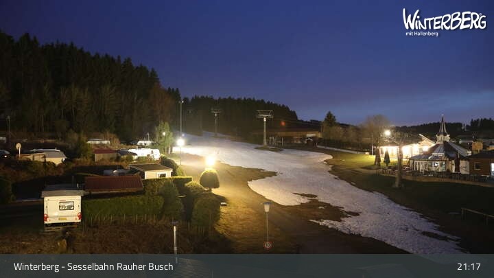 Archived webcam image showing Winterberg ski resort: chair lift "Rauher Busch" on 12 Apr 2026 at 21:39 Latest