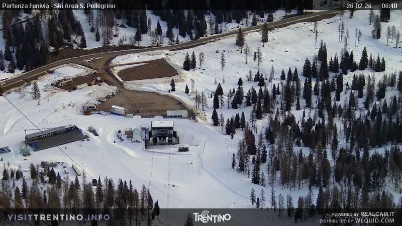 Archived webcam image showing Fassatal - San Pelegrino - panorama view of the ski-piste and liftmachinery of the 06:00