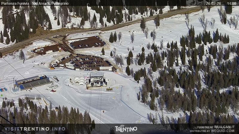 Webcam Fassatal - San Pelegrino - panorama view of the ski-piste and liftmachinery of the "San Pellegrino Pass", 1,907 m