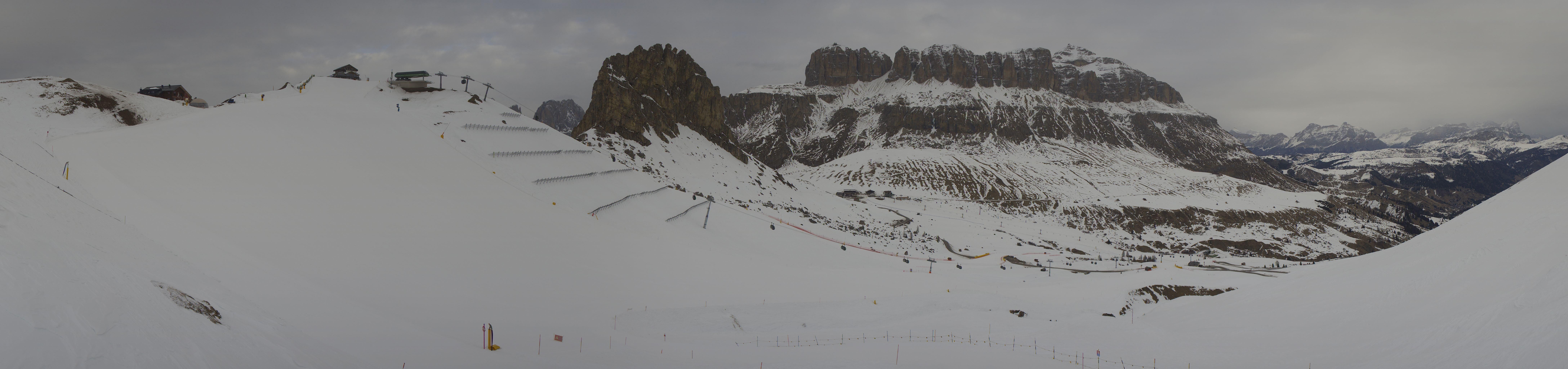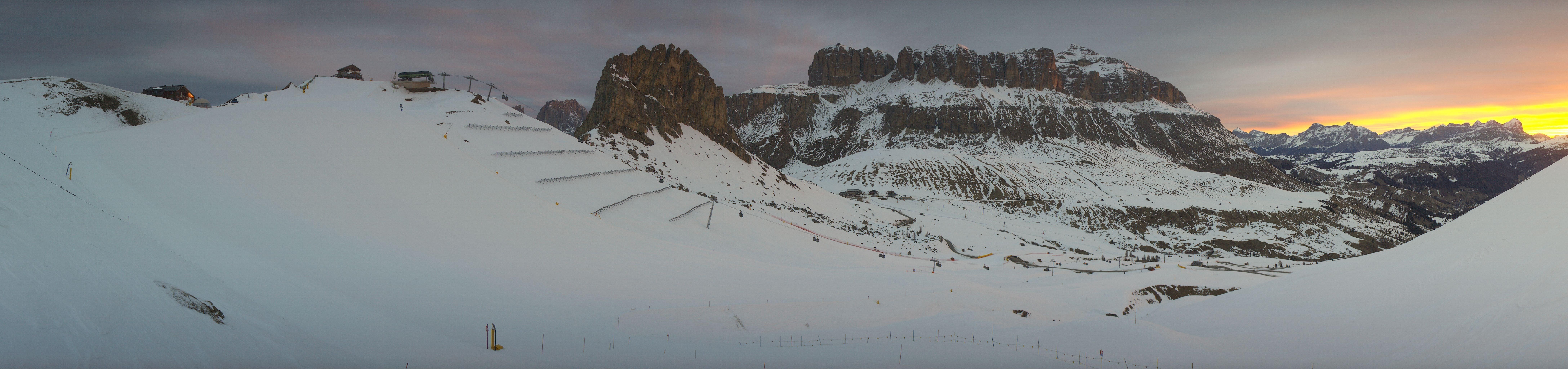 This webcam gives you a Panorama over the Pordoi Pass and the Sella group. This is also where the ski circuit Sella Ronda passes by.