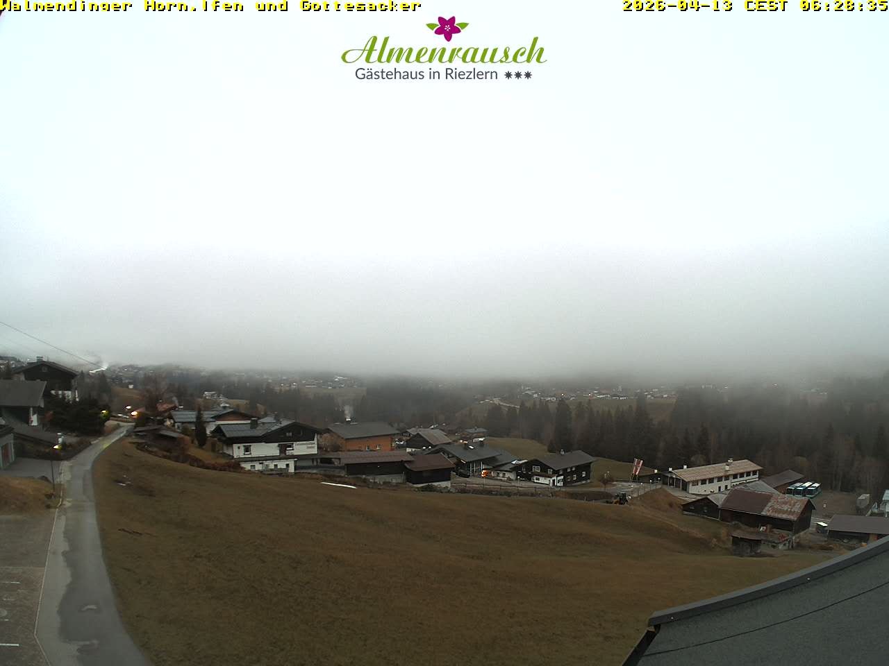 The webcam shows the view from Guesthouse Almenrausch in Riezlern, Kleinwalsertal.