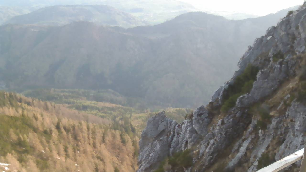 Webcam located Feuerkogelhouse. You can see the village of Gmunden at Lake Traunsee.