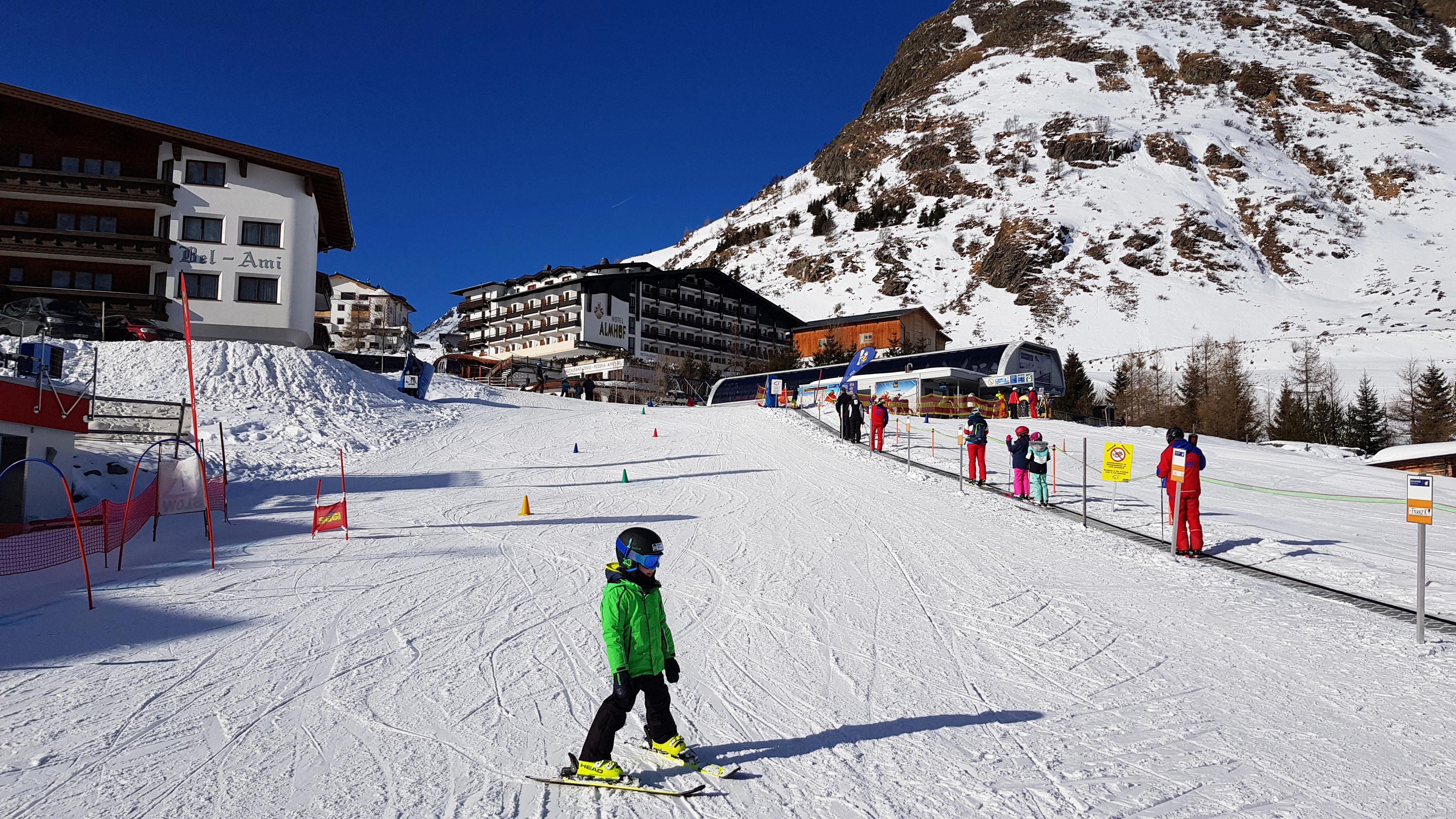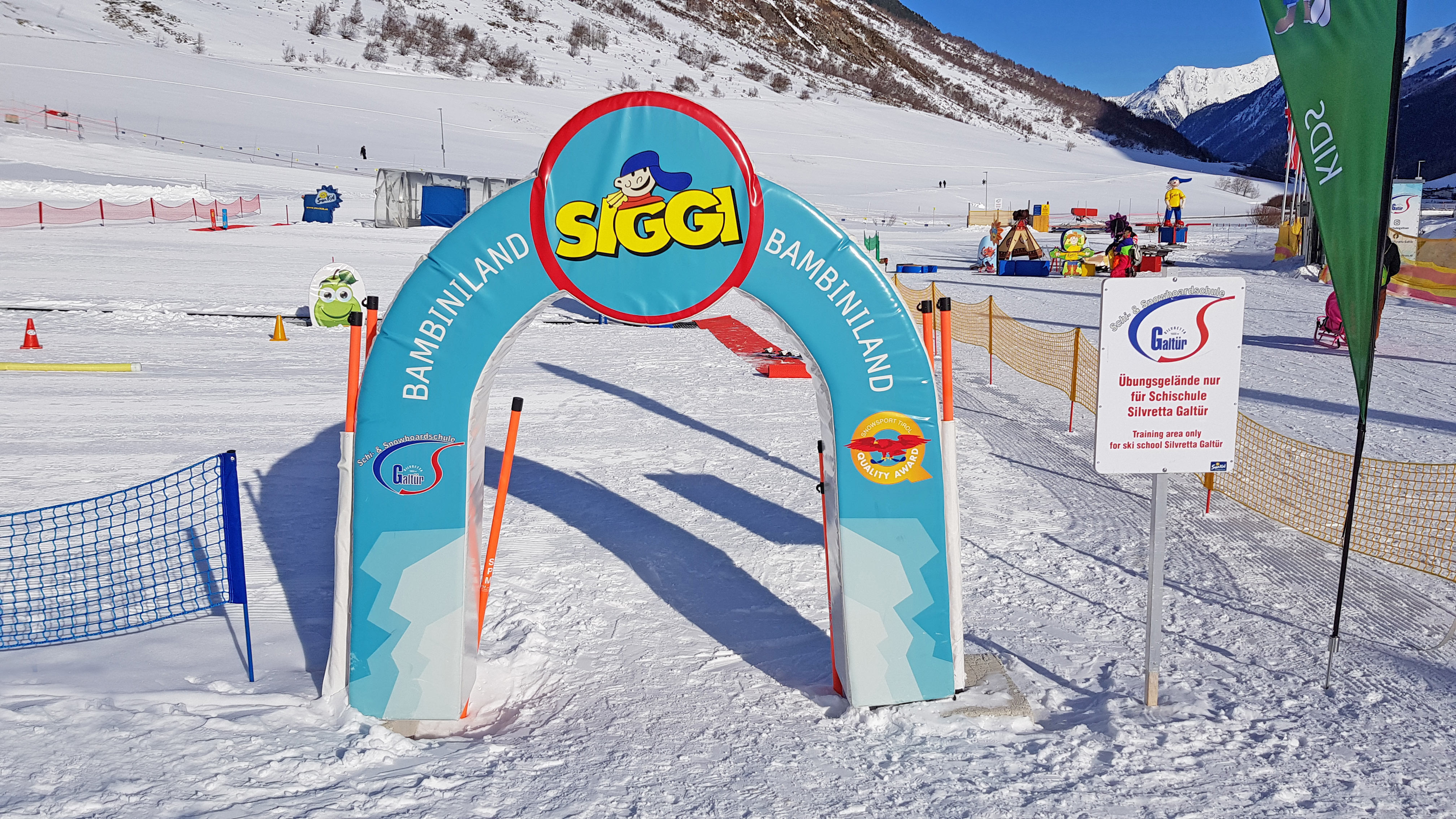 Galtür offers 43 kilometres of pistes, most of them are classified as medium difficulty. But a look at the piste plan is a little deceptive. Hardly any of the red runs are really challenging and with a little practice even beginners and less experienced skiers can explore almost the entire ski area. For your first attempts at sliding, we recommend the ski school area in Sector 01 "Zwergerlwelt". It is located together with "Siggi's Bambiniland" at the valley station of the Alpkogelbahn. The carpet lifts there provide the easiest way to start skiing. With the blue run 3, Galtür offers only one run classified as "blue". However, as already mentioned, the numerous red runs are no problem for beginners. Also recommendable is run no. 8 at the two Kopssee lifts. In summary, it can be said that Galtür is a good beginners' ski area. However, Galtür cannot quite reach the highest rating with just one blue run.