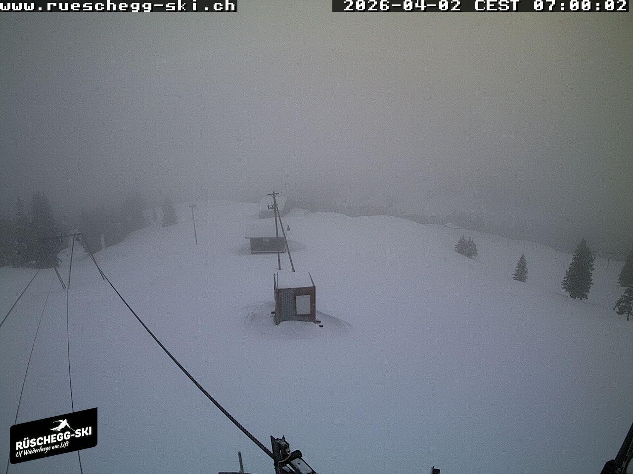 Archiviertes Webcam Bild: Blick auf die Bergstation Lischboden im Skigebiet Rüschegg am 02.04.2026 um 07:30 Uhr 07:00