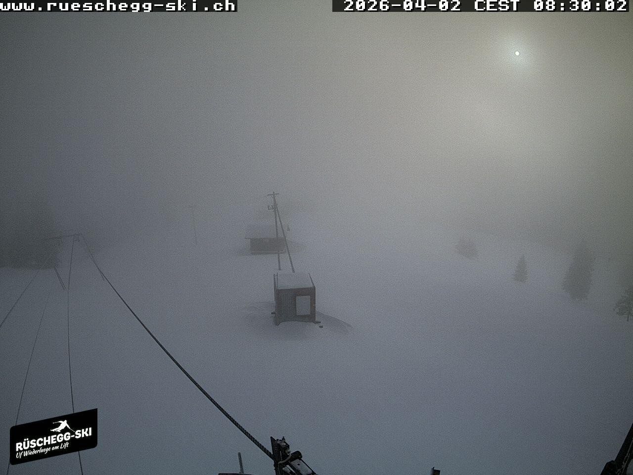 Archiviertes Webcam Bild: Blick auf die Bergstation Lischboden im Skigebiet Rüschegg am 02.04.2026 um 08:30 Uhr 08:00