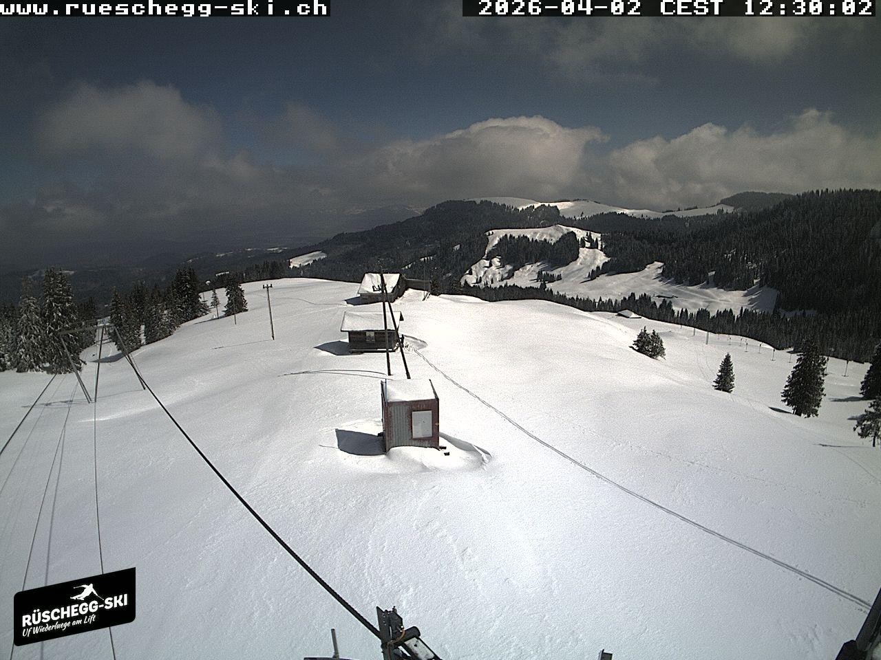 Archiviertes Webcam Bild: Blick auf die Bergstation Lischboden im Skigebiet Rüschegg am 02.04.2026 um 12:30 Uhr 12:00