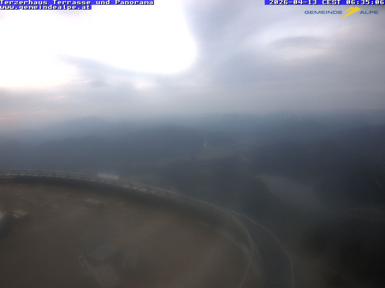 Archived webcam image showing Panoramic View Terzerhaus - Gemeindealpe Mitterbach on 13 Apr 2026 at 06:24 05:00