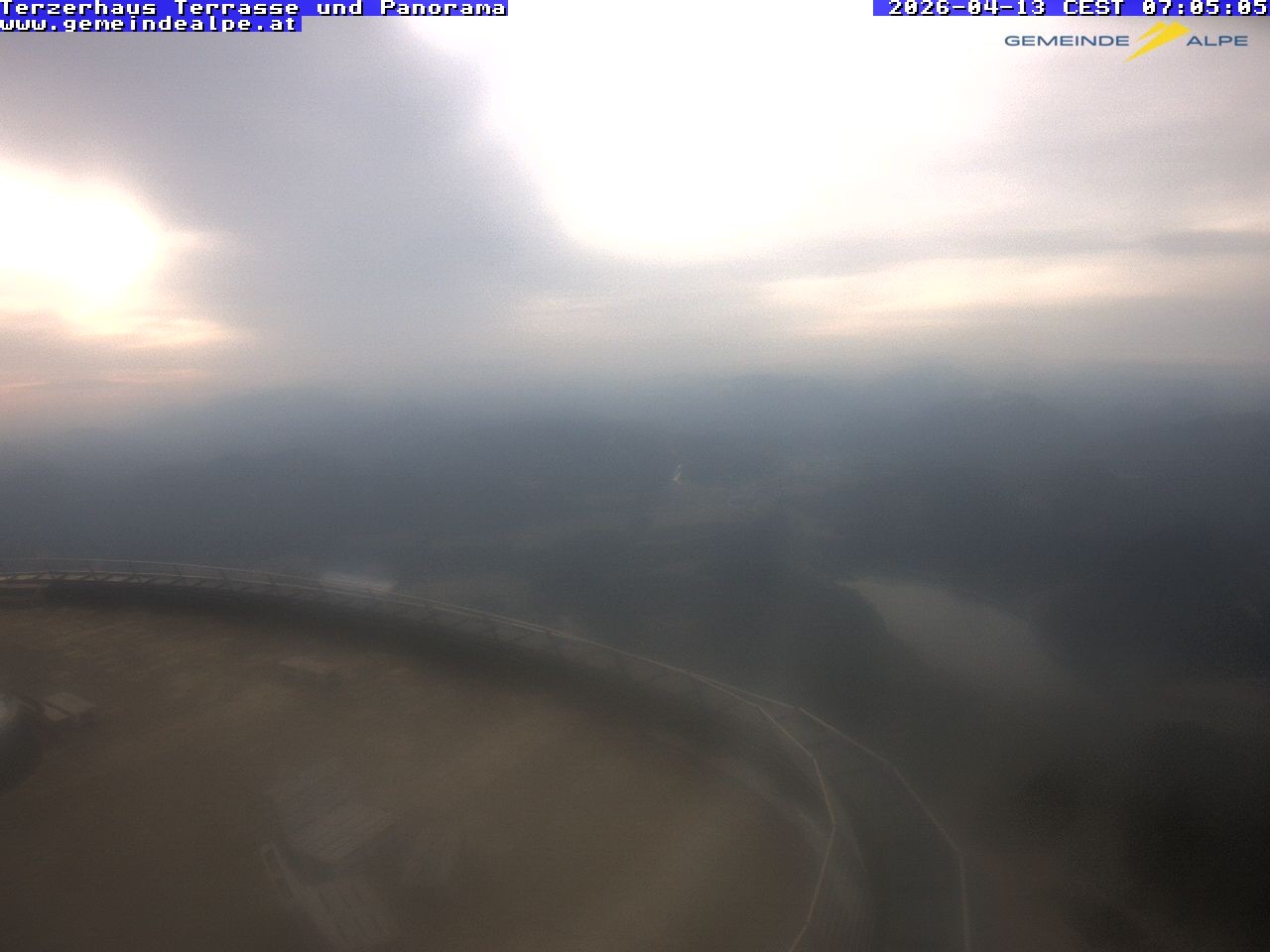 Archived webcam image showing Panoramic View Terzerhaus - Gemeindealpe Mitterbach on 13 Apr 2026 at 07:24 Latest