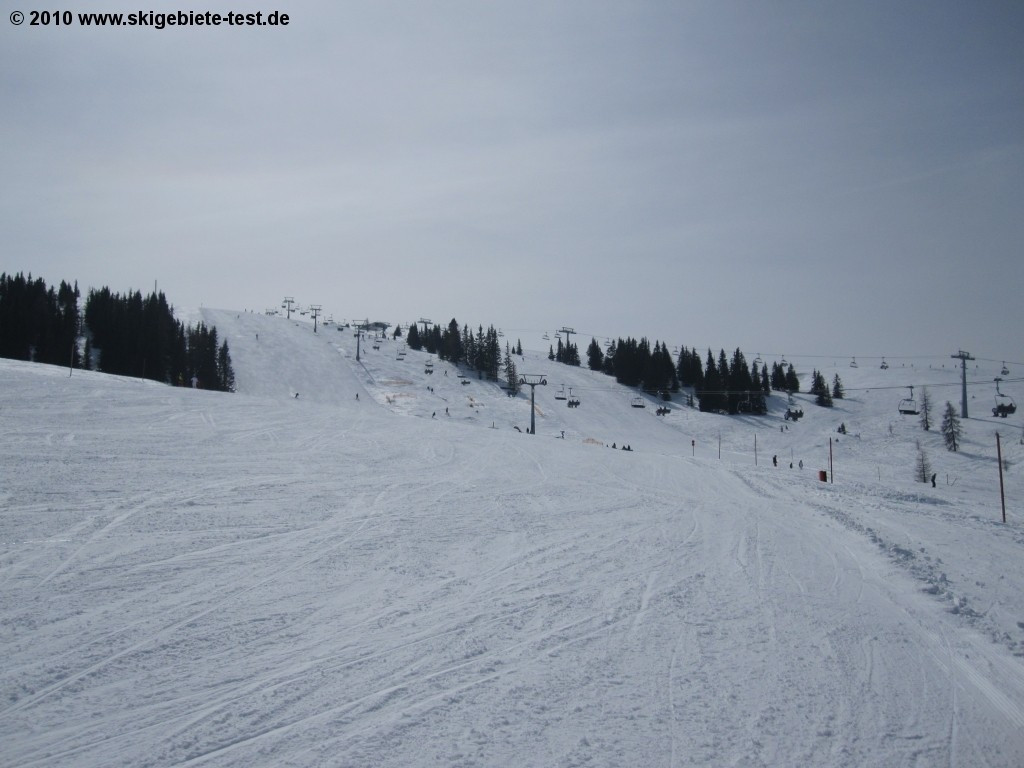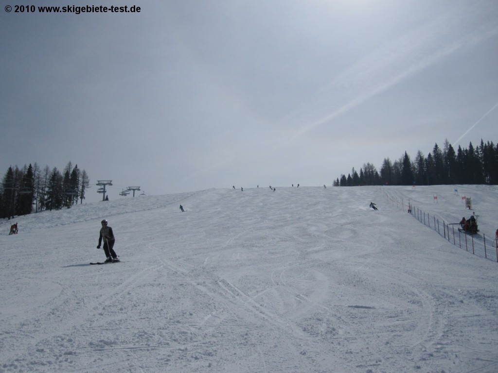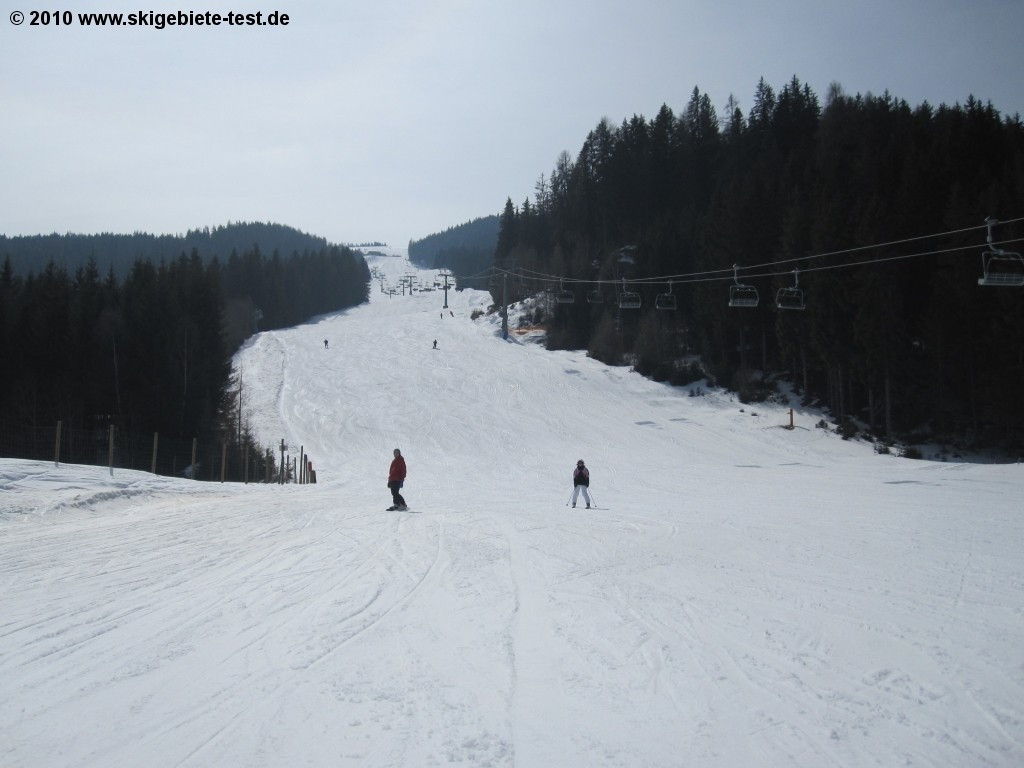 More advanced skiers will be happy to find that Gerlitzen has over 30 kilometers of red and black trails to offer, including two ungroomed slopes. We highly recommend checking out the long Talabfahrt run, which leads all the way back down into Klosterle (1000m) from the upper terminal of the Kanzelbahn lift (1911m). There are approximately 7.5 kilometers to be conquered on Klosterleabfahrt II (no.8) and Klosterleabfahrt I (no.9) without having to board another lift. The area around Bergeralm is a bit quieter, but you’ll also find some nice runs there, including the Birkenhof run (no.11), which will take you down to the Seppl-Hutte. If you’re looking to get some nice wide carving in, you might try the very broad and inviting Panorama run (no.1). Gerlitzen’s mostly modern lifts also brought in some points. Only in terms of overall size does Gerlitzen have to concede a little in this category. With a total of 45 kilometers of slopes, demanding skiers might wish for a little more variety after a few days.