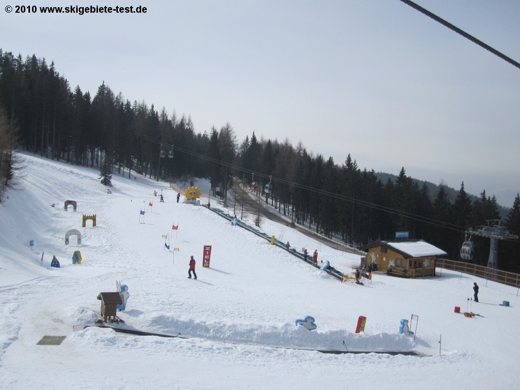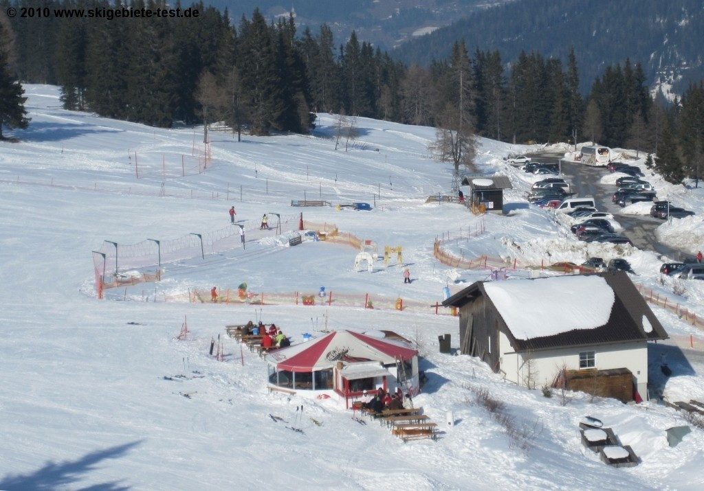 There are three practice areas for kids at Gerlitzen; particularly creatively-designed is Schneebarenland kids’ park at the mid-way terminal of the Kanzelbahn, where you will also find certified ski instructors to help your little ones learn the basics. The Moserbahn double chair (E) will take you directly from Schneebarenland to the Sonnenlift practice slopes (no.15) as well as the easy trail Moser-Abfahrt (no.2a). Further beginners’ areas can be found on the Wörthersee slope (just below the Lodronlift (L)) and in Klosterle/Arriach at the Klosterle practice lifts A and B. Once your kids have got the fundamentals down, they shouldn’t have much of a problem with the red trails in the ski area either – including the 7.5-kilometer long trail from the very peak of the mountain (1911m) all the way back down into Klosterle (1000m). Should your kids (or you for that matter!) happen to run out of breath on the long trail, you’ll find the “Huaba Hittn” along the way to take a quick break.