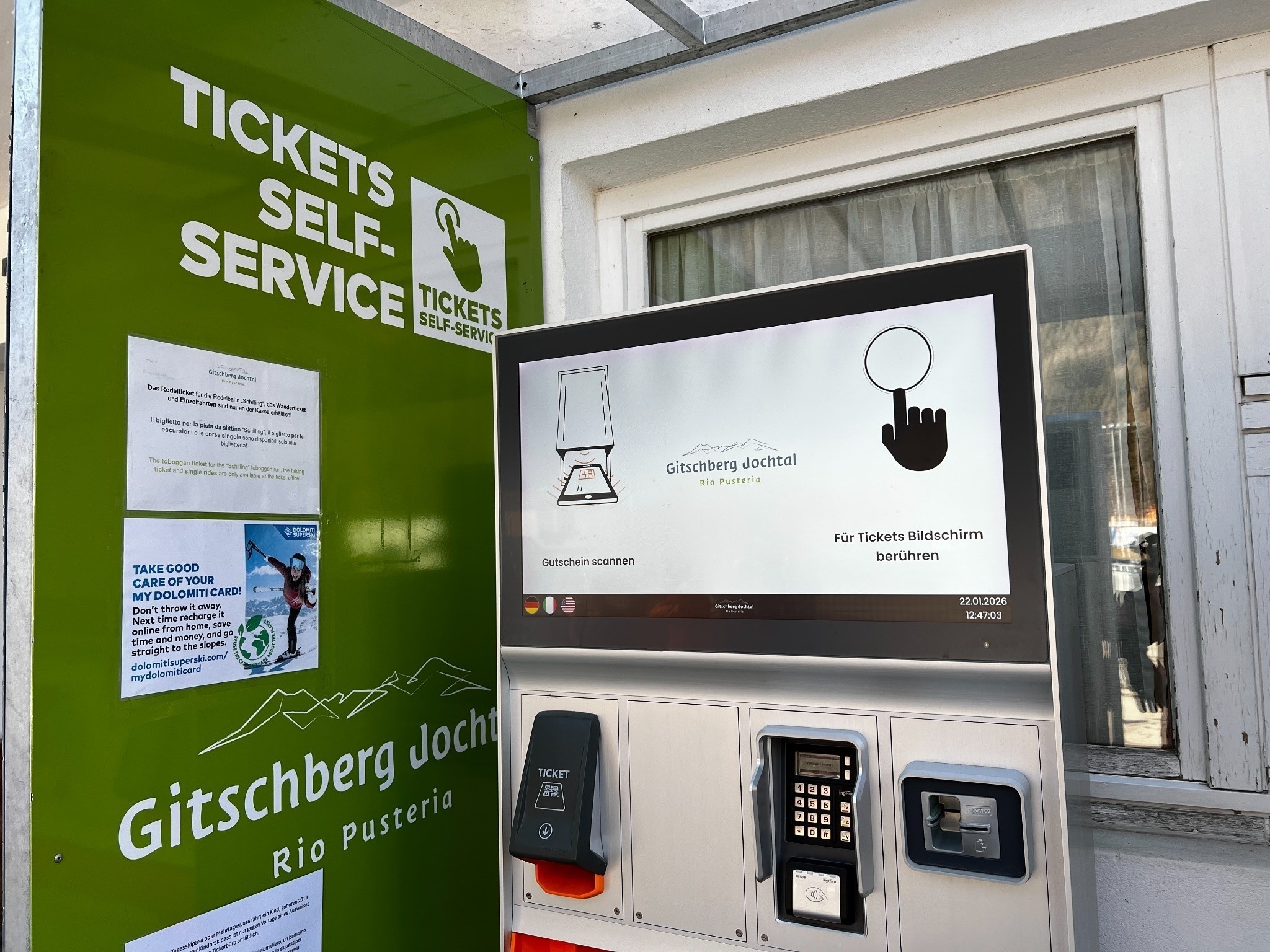 At Gitschberg Jochtal, your ski day starts as smoothly as possible – service is a top priority here! Get your tickets quickly at the machines, withdraw cash directly from the ATM, and use the service point if needed.
