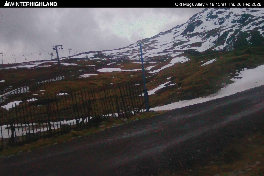 The webcam is located in the Glencoe Mountain ski resort in Scotland, next to the Old Mugs Alley slope.