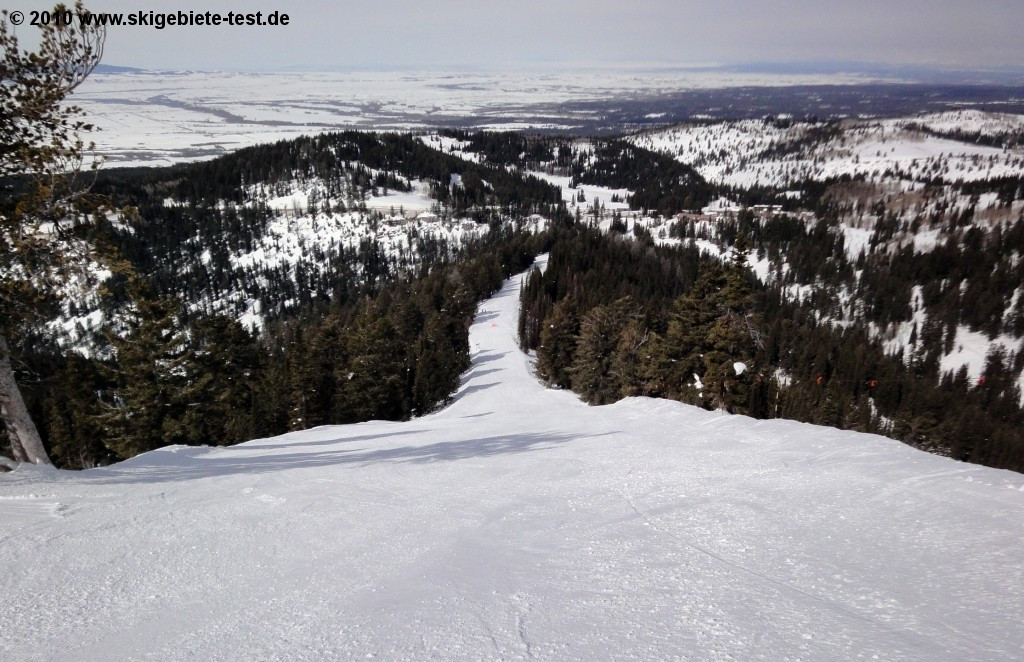 Grand Targhee’s marketing team likes to toot their deep snow horn by implying all over the place that you’ll be swimming in so much powder here that you might just need a snorkel. Snorkel’s cafe in the valley even has a life-sized picture of a skier wearing one. But all exaggerations aside, the fact is that Grand Targhee’s 43 feet (13m) of snowfall a year are the most of any ski resort in the US. But we did get by without a snorkel! If you like off-piste, you’re going to love the heaps of dryer-than-dust powder here at Grand Targhee. And since the upper part of the ski area lies above the tree line, you’ll find wide open powder runs all over the place. But even if it’s groomed carving runs you prefer, you’ll be well-served at Grand Targhee. After taking the Dreamcatcher up the mountain, you’ll find a variety of intermediate runs to choose from. Our favorite carving run: the long Dreamweaver trail off of the Sacajawea lift weaves its way through the Targhee National Forest like a perfect white ribbon. And if you’re planning on staying in the area for a while, take advantage of the opportunity to check out the nearby Jackson Hole resort.