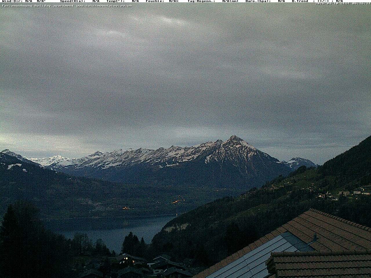 Archived webcam image showing View of Thunsersee, Niesen mountain (2362m) and Kander valley on 10 Apr 2026 at 04:42 03:00