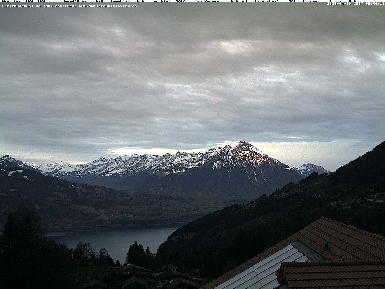 Archived webcam image showing View of Thunsersee, Niesen mountain (2362m) and Kander valley on 10 Apr 2026 at 06:42 05:00