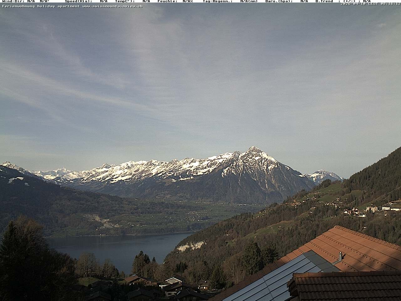 Archived webcam image showing View of Thunsersee, Niesen mountain (2362m) and Kander valley on 10 Apr 2026 at 08:42 07:00
