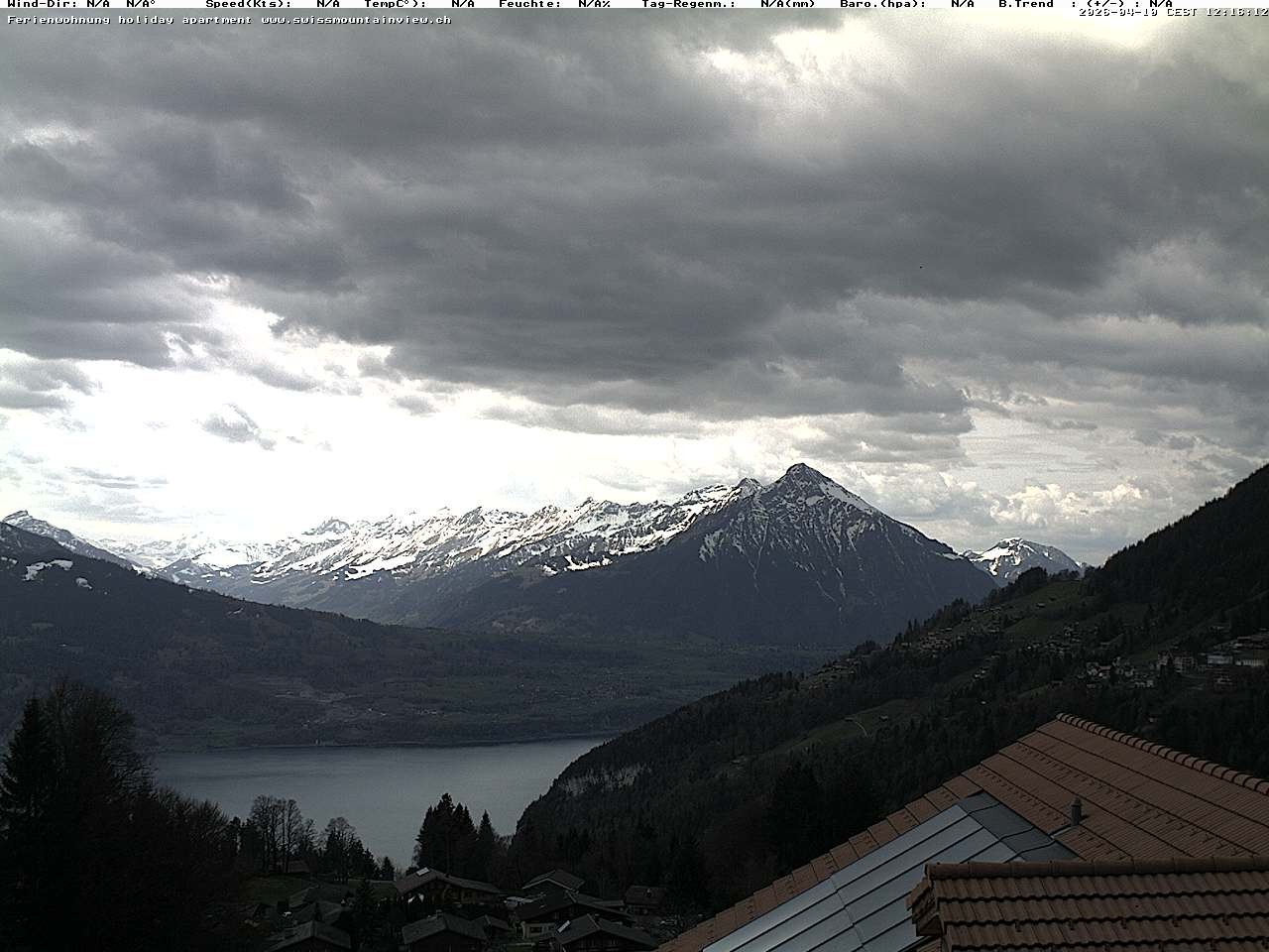Archived webcam image showing View of Thunsersee, Niesen mountain (2362m) and Kander valley on 10 Apr 2026 at 12:42 Latest