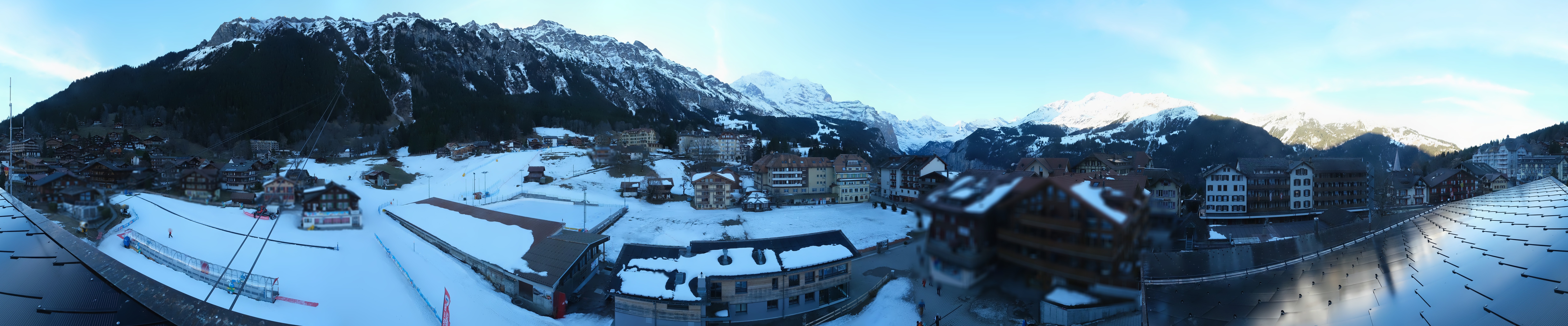 Located at the base station in Wengen the webcam shows the town center.