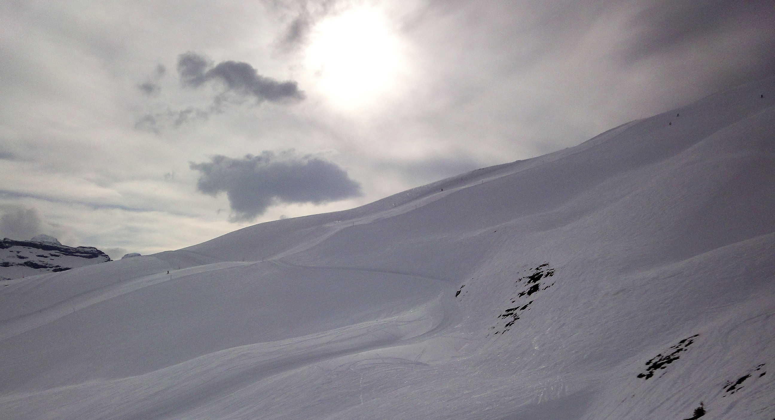 - V2: At the mountain station of the Eigernordwand left, instead of taking run no.26, head over to the other side of the chairlift. From there, you first head through a steeper passage before the terrain flattens out and you can enjoy some laid-back powder as you return towards run no. 26. The distance you want to venture from the actual chairlift is completely up to you. However, you should ensure that you return to the run before you reach the tracks of the cog railway.