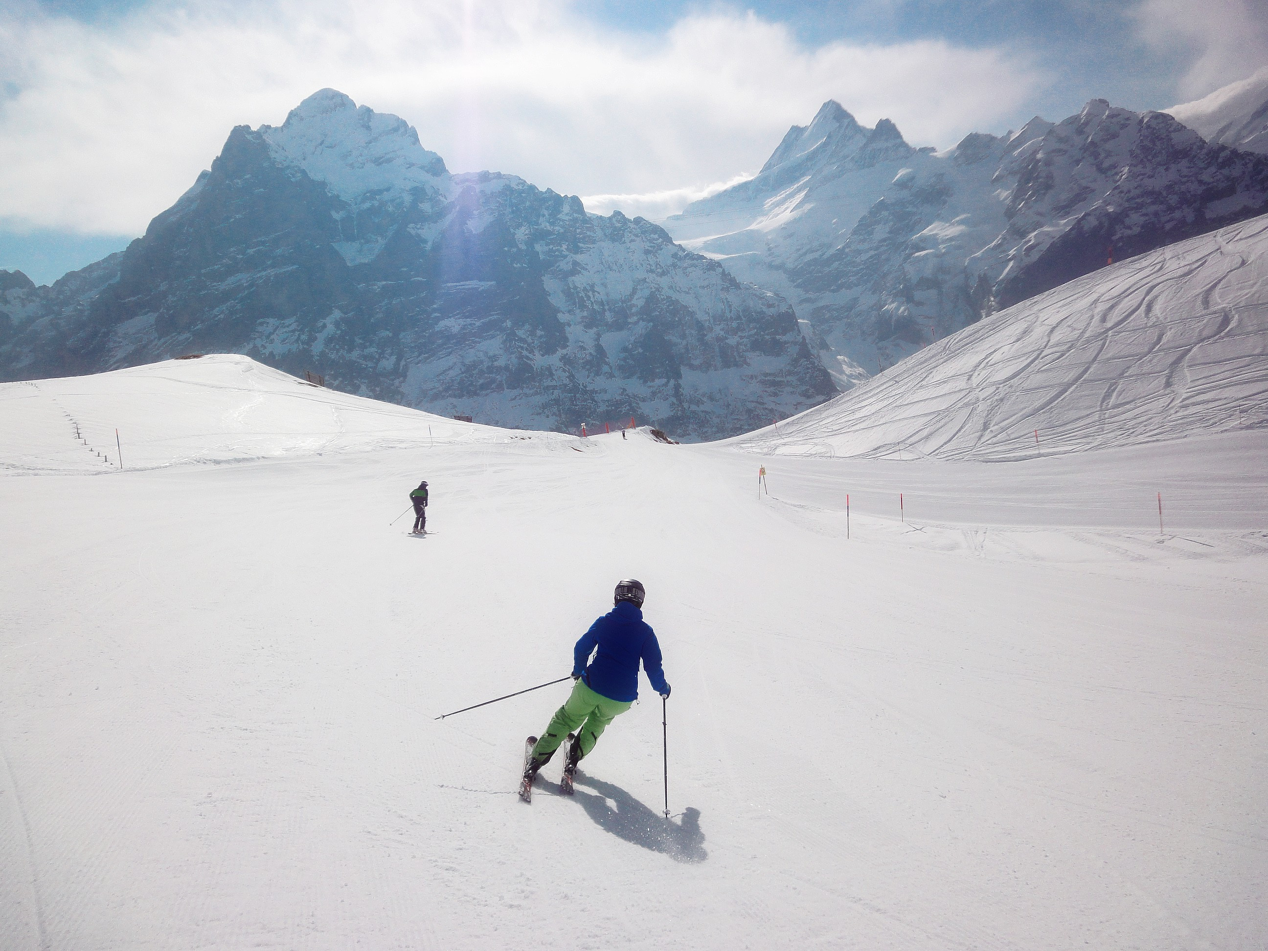 The Jungfrau ski region surrounding the ski resorts Grindelwald and Wengen is one of those trips that is guaranteed to live long in the memory. Why? Well, the mighty Eiger (3970m), Mönch (4107m) and Jungfrau (4158m) peaks are three good reasons, and they certainly live up to their billing as one the most impressive mountain massifs anywhere on Earth. On Kleine Scheidegg, skiers almost feel like the Eiger north face is within touching distance.