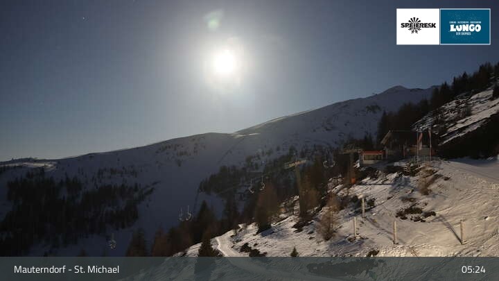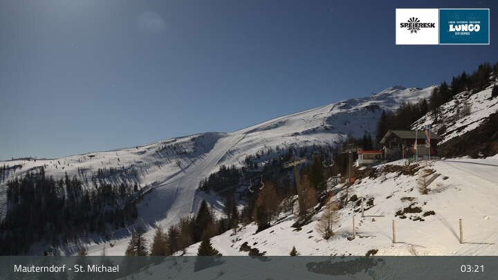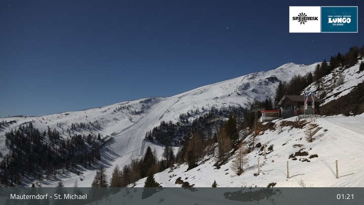 View over the slopes at the top station of the lift Grosseckbahn in Mauterndorf.