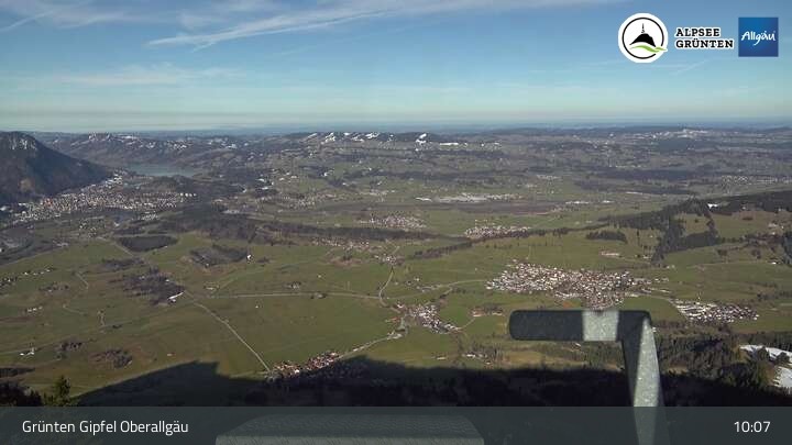 The webcam is located on the summit of the Grünten in the Oberallgäu and offers a beautiful view of Immenstadt and the Großer Alpsee.