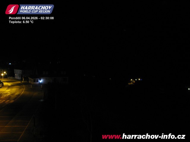 Archived webcam image showing ski-jumping hill Čerťák on 6 Apr 2026 at 00:39 23:00
