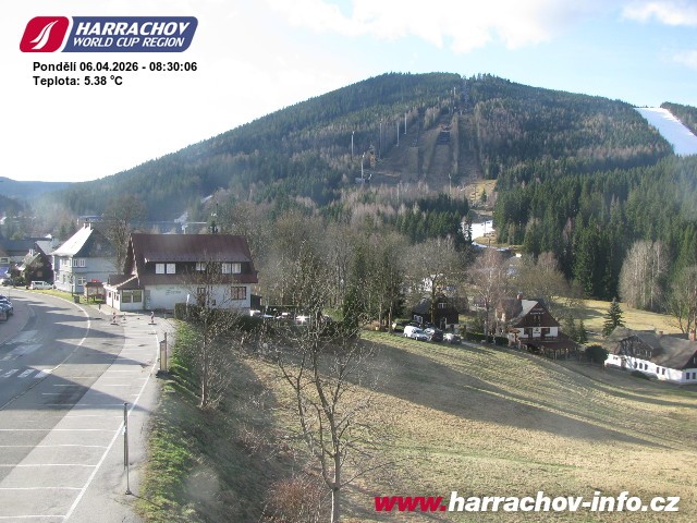 Archived webcam image showing ski-jumping hill Čerťák on 6 Apr 2026 at 08:39 07:00