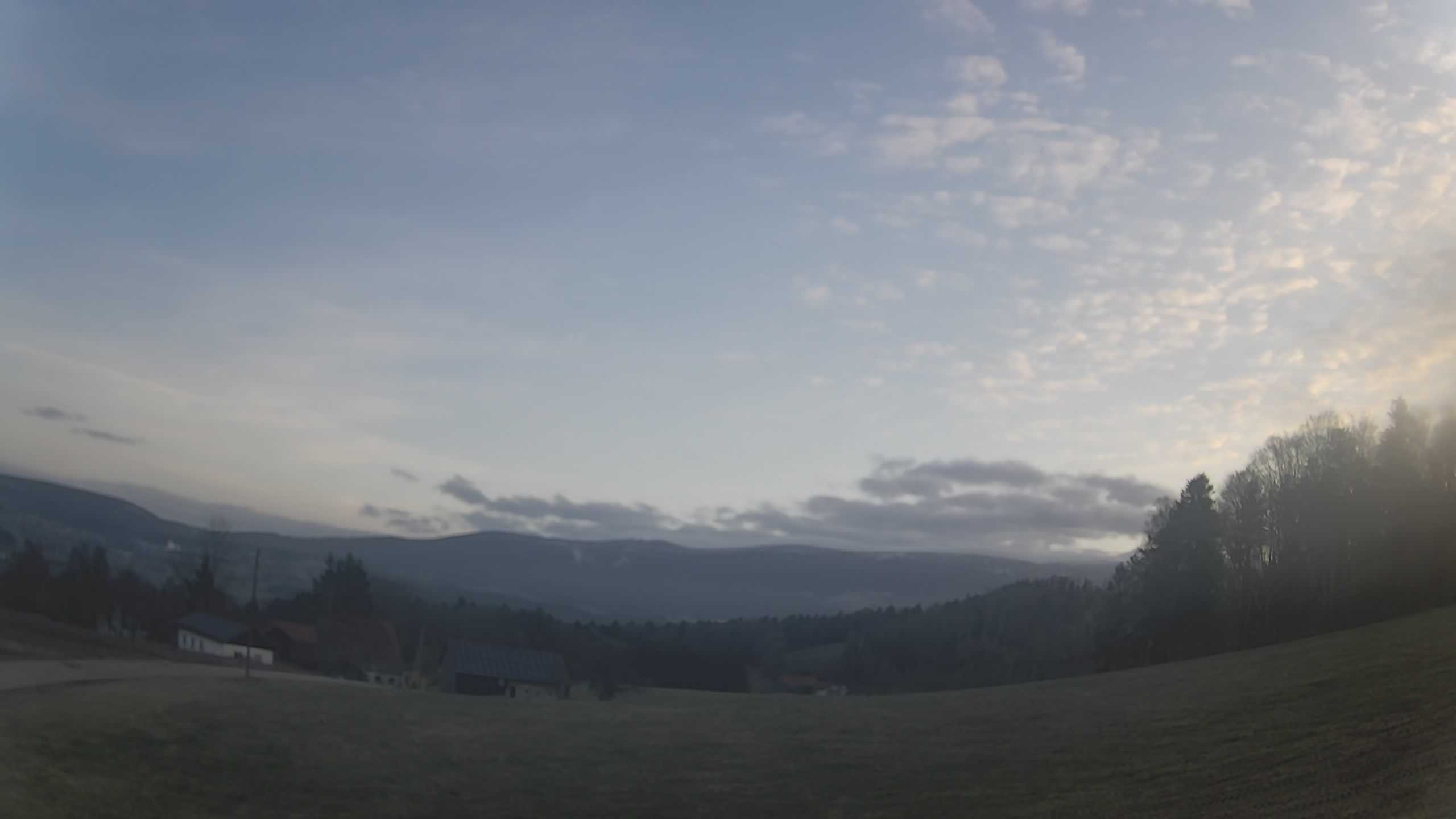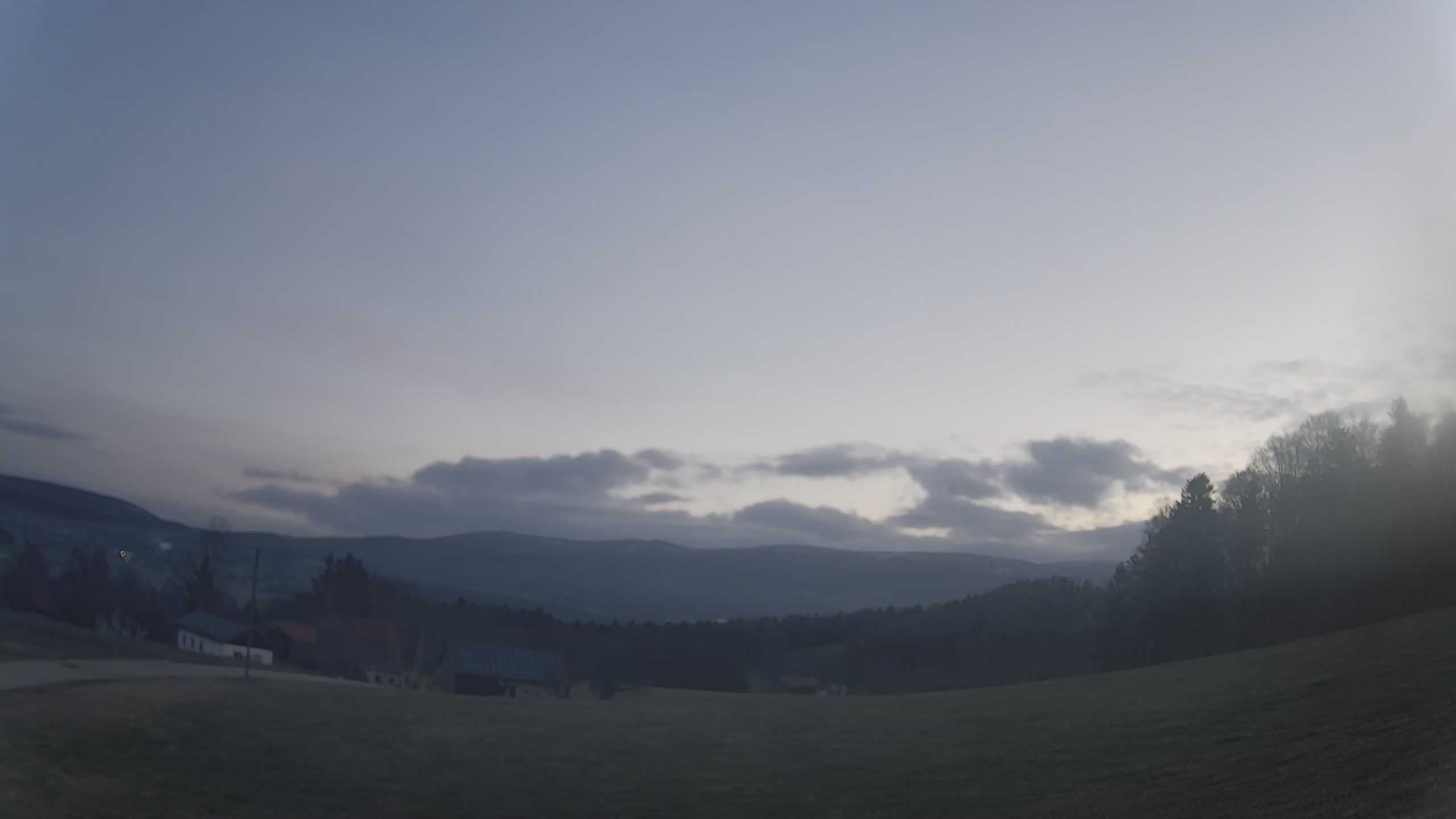 Archived webcam image showing Dreisessel mountain and Neureichenau on 1 Apr 2026 at 06:49 05:00