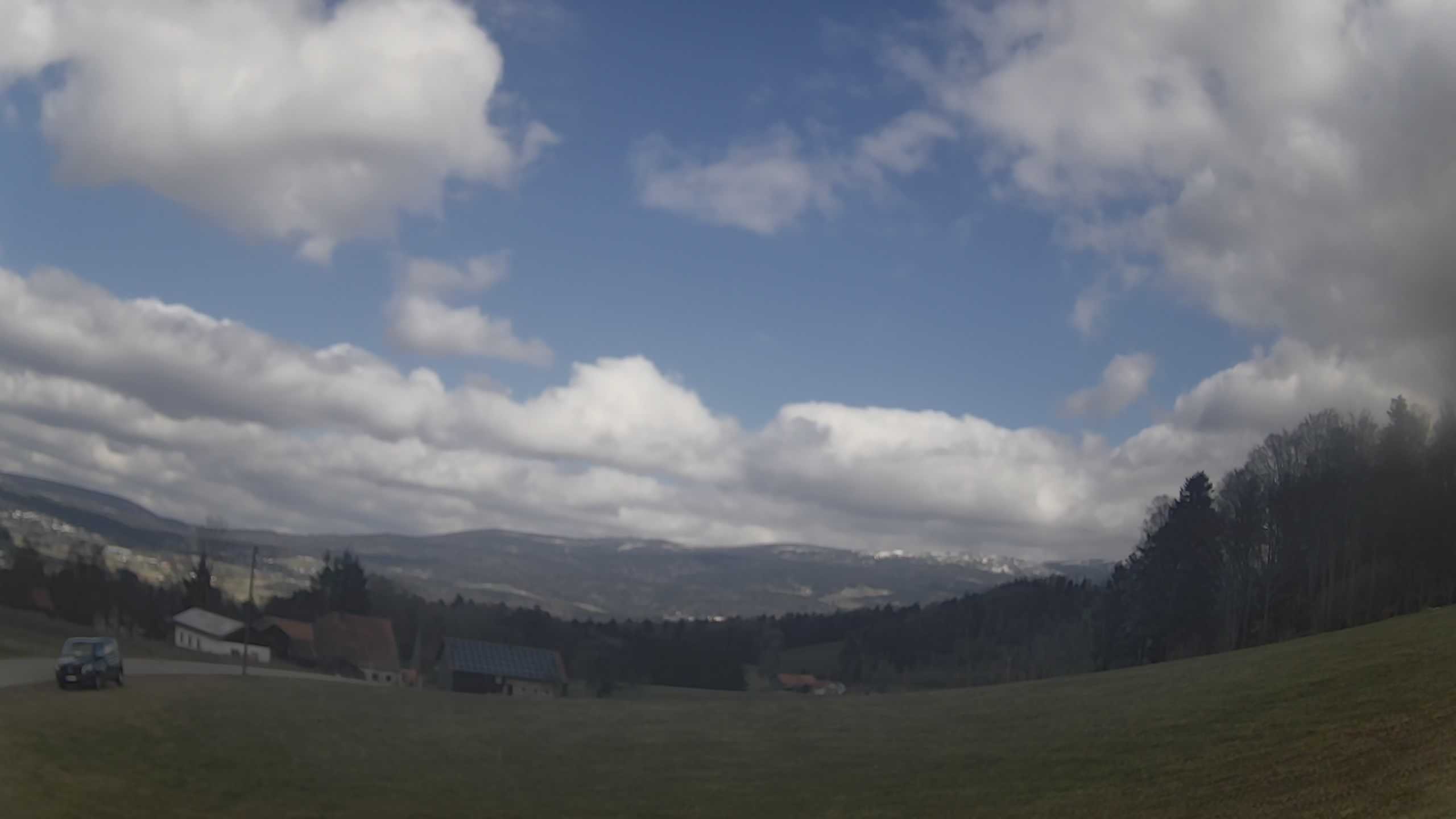 Archived webcam image showing Dreisessel mountain and Neureichenau on 1 Apr 2026 at 12:49 11:00