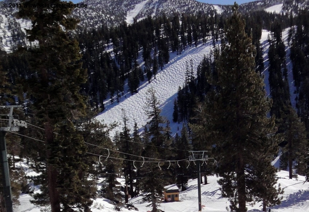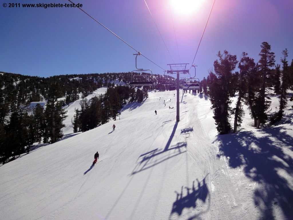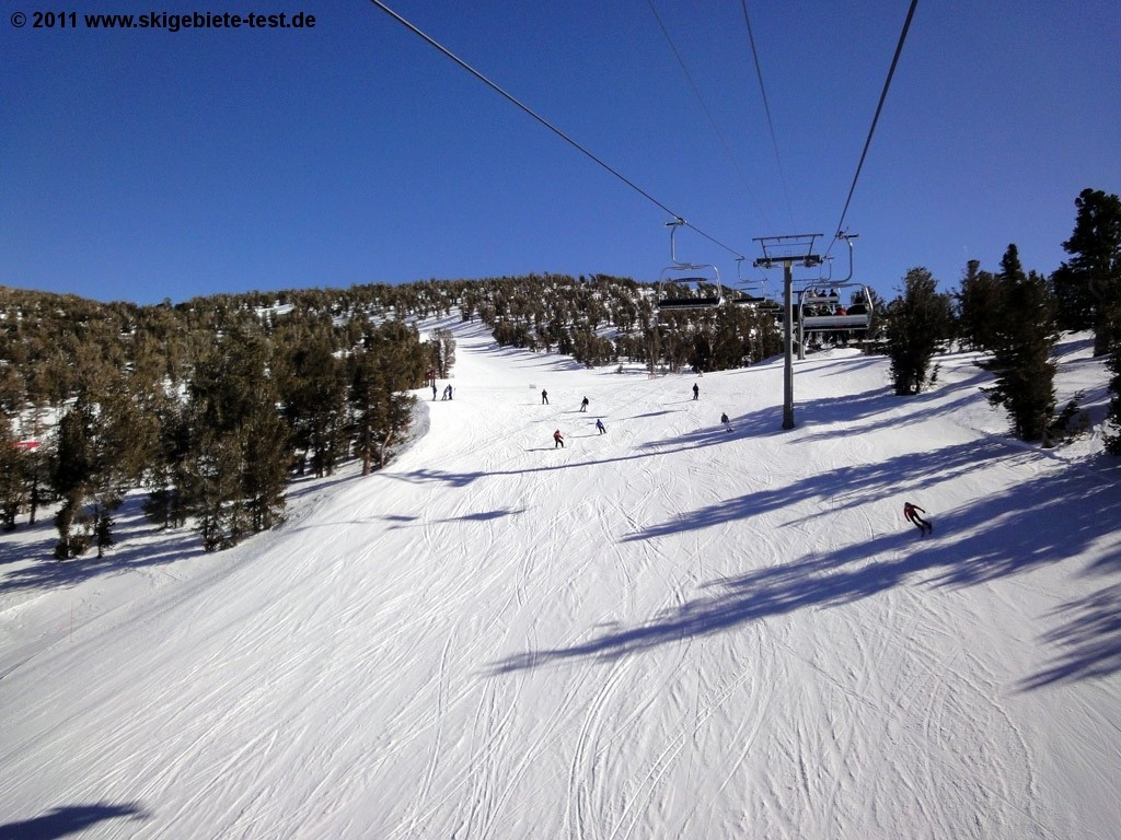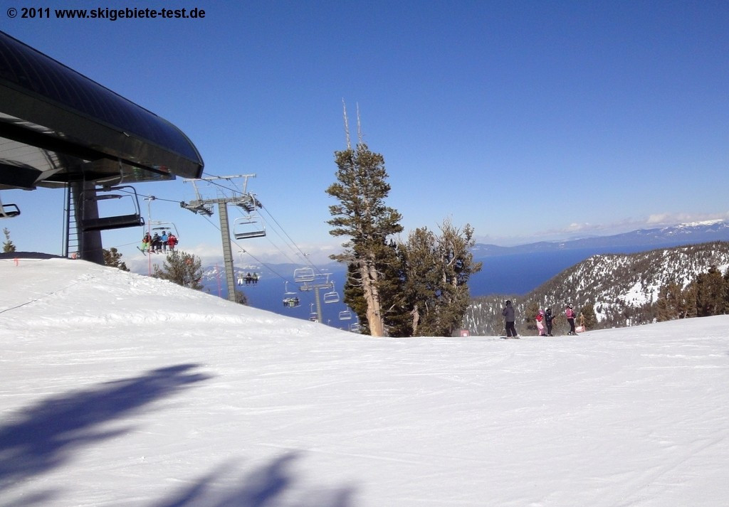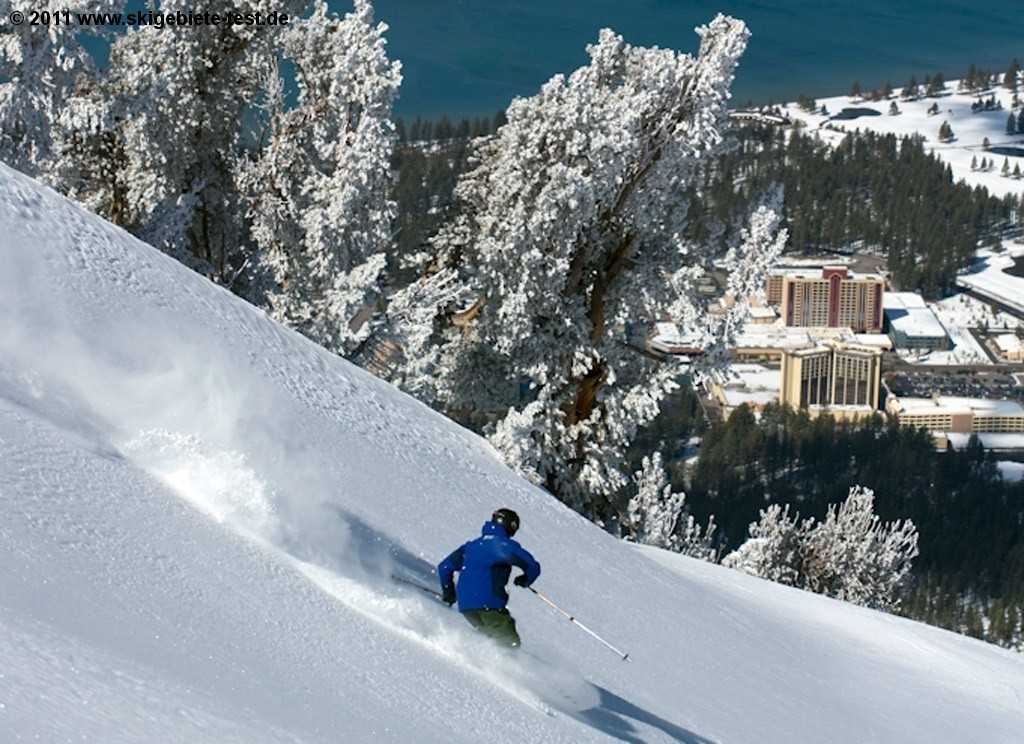Testing ski resorts in the US, we began to notice that quite a few of them have begun adding increasingly steeper off-piste slopes to their terrain to provide their guests with even more extreme powder experiences. Heavenly is no exception; at the far end of the Mott Canyon lift slopes as well as in the powdery Milky Way Bowl you will find numerous Black Diamonds for your off-piste pleasure. But you will also find a surprising number of groomed intermediate slopes for athletic skiers who prefer to ski on the trails rather than beside them. Particularly impressive carving runs are the intermediate (categorized blue in the US) trails off the Stagecoach Express, Dipper Express and Canyon Express lifts. The lifts themselves are very modern for American standards and not too shabby even in comparison to our own European ones. The panoramic view is incomparable, looking down over the steel-blue Lake Tahoe, and helps Heavenly get as close as humanly (and earthly) possible to earning its name. The resort received 5 out of 5 possible stars in the Intermediate category.
