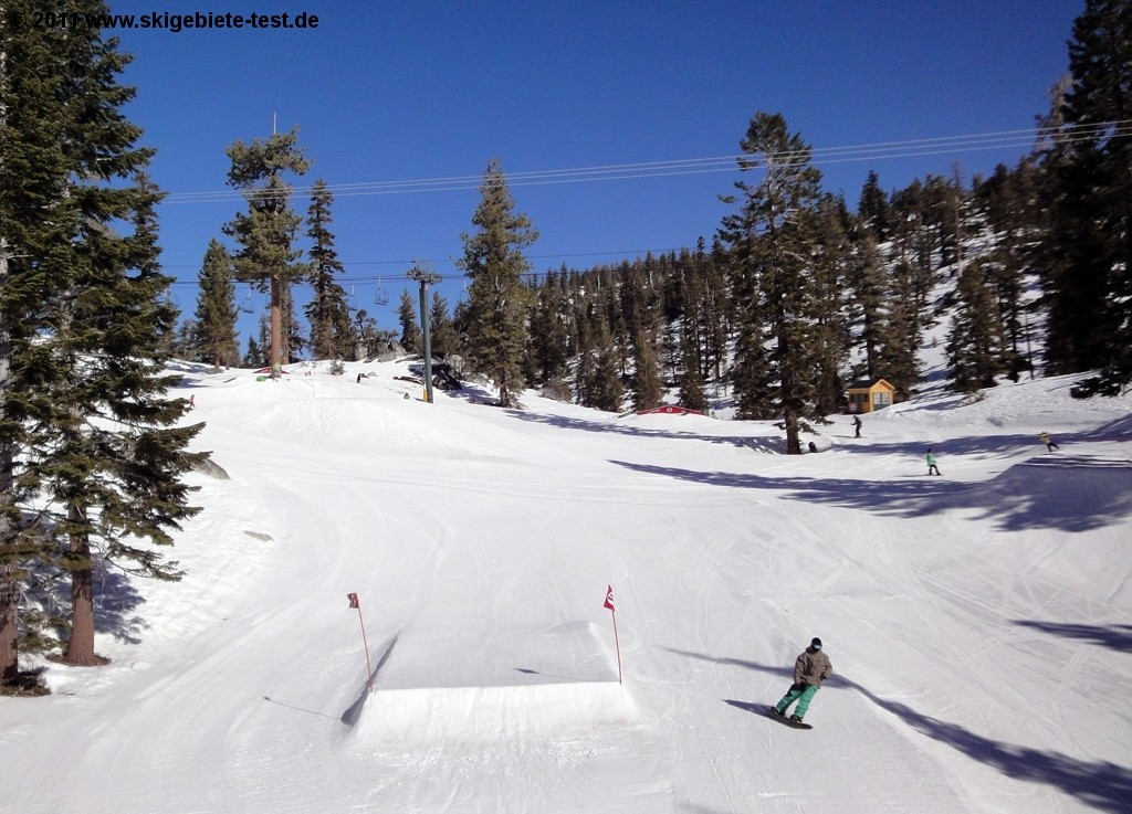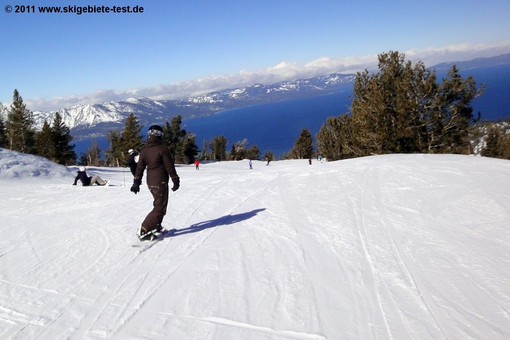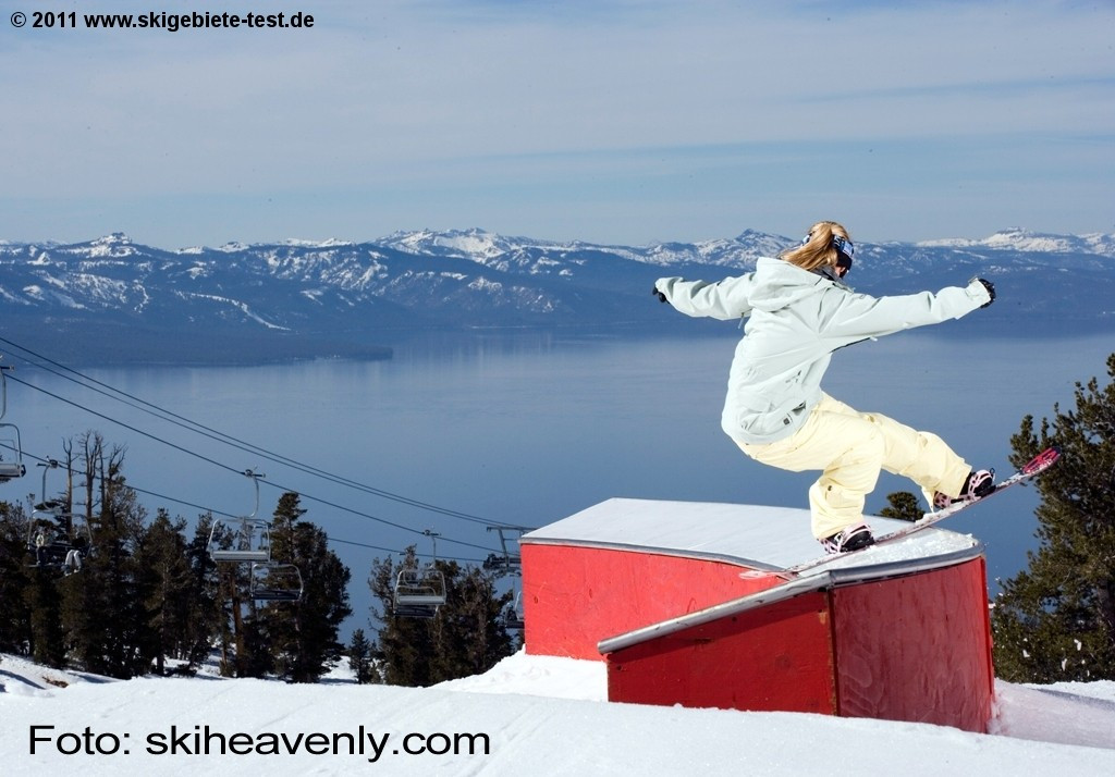 To get straight to the point, the freestyle at Heavenly is for everybody from newbies to aces absolutely perfect. Progression Park offers beginners smaller jumps and rails ideal for working on your technique, and High Roller Park off the Canyon Express takes care of the boarders at the other end of the ability-level scale. Even the pros train at High Roller in preparation for freestyle competitions. If powder is more your cup of tea, check out Mott Canyon and the area surrounding the Milky Way Bowl (read more under Freeriding/Experts). Carving buffs will find plenty of perfectly-prepared pistes, too (more under Intermediate). It’s only the beginning boarders who might not be satisfied with the small number of flatter practice slopes at the area.