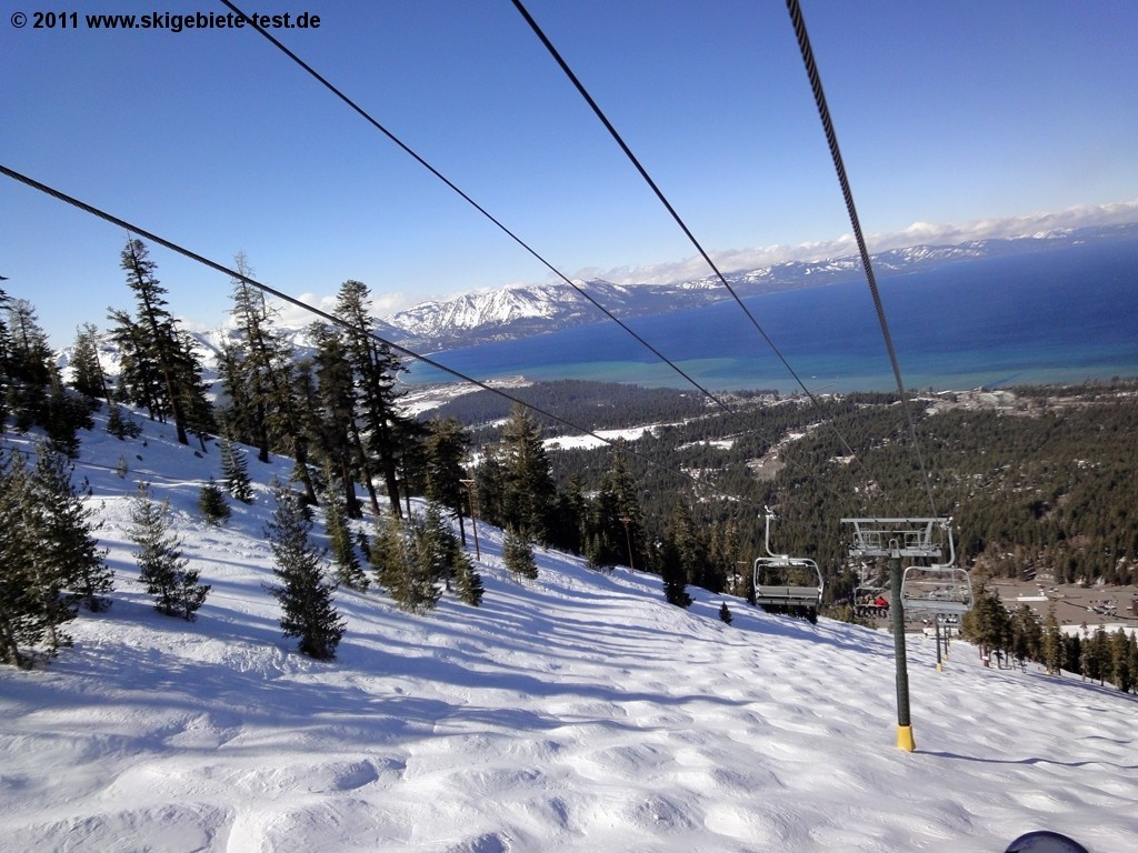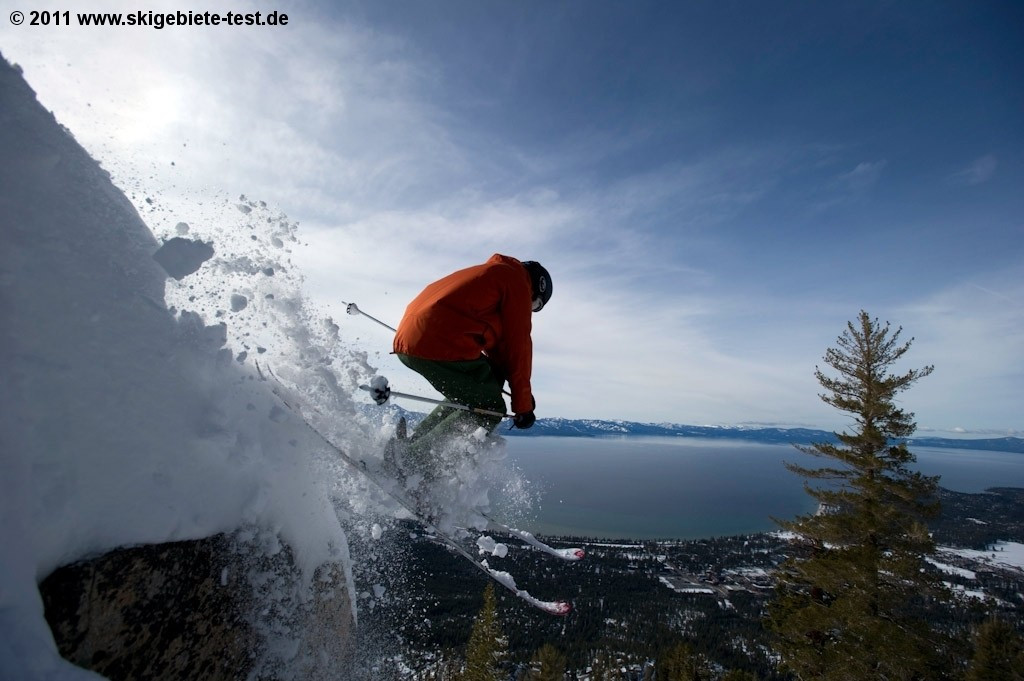 During our numerous years as ski resort testers, we have had the pleasure of visiting and evaluating hundreds of resorts all over the world. Very few have knocked our socks off the way Heavenly did. This resort, located at the southern end of North America’s largest alpine lake, Lake Tahoe, with its stunning views of the steel-blue lake and the snow-blanketed peaks of the Sierra Nevada, are sure to remain forever etched in the memory of anyone fortunate enough to experience it. Consisting primarily of intermediate (blue in the US) and expert trails, the resort appeals most to freeriders and more experienced skiers. And yet, thanks to particularly good daycare opportunities, Heavenly is also a great choice for a family vacation in South Lake Tahoe.