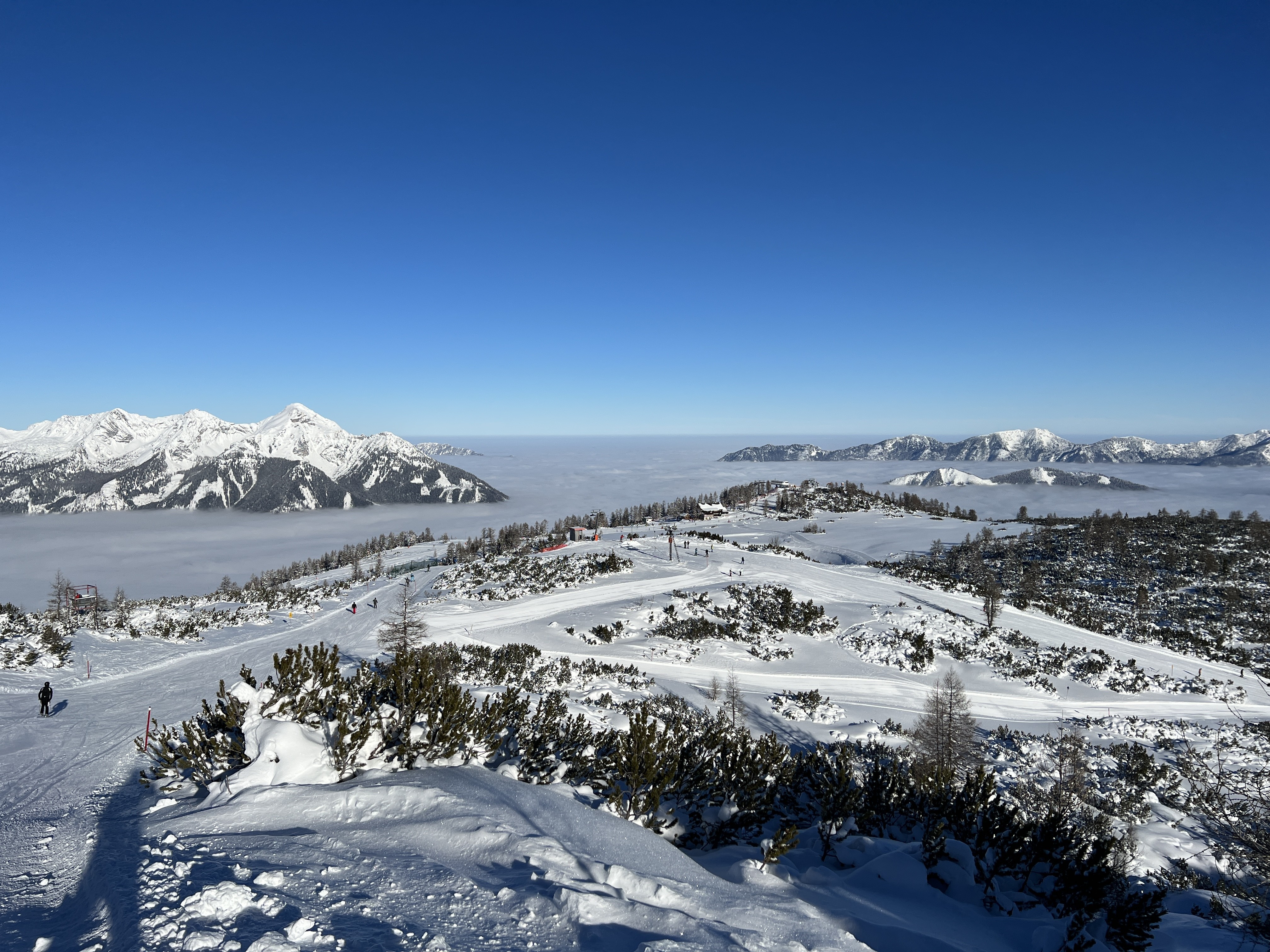 Since only 12 of the 40 kilometers of slopes are marked blue, Hinterstoder's focus at first glance tends to be on sportier slopes. But we can also recommend the ski area to beginners! The easy slopes are centrally located around the Hutterer Böden and thanks to the 10-person gondola Hössbahn also still easy to reach. While the little skiers try their hand at skiing there in the Sunny Kids Park children's area, older novice skiers can choose between the short blue-marked runs around the Lärchen, Schul and Sonnkogel lifts. Those who are still unsure are best advised to contact the local Stodertal winter sports school.
