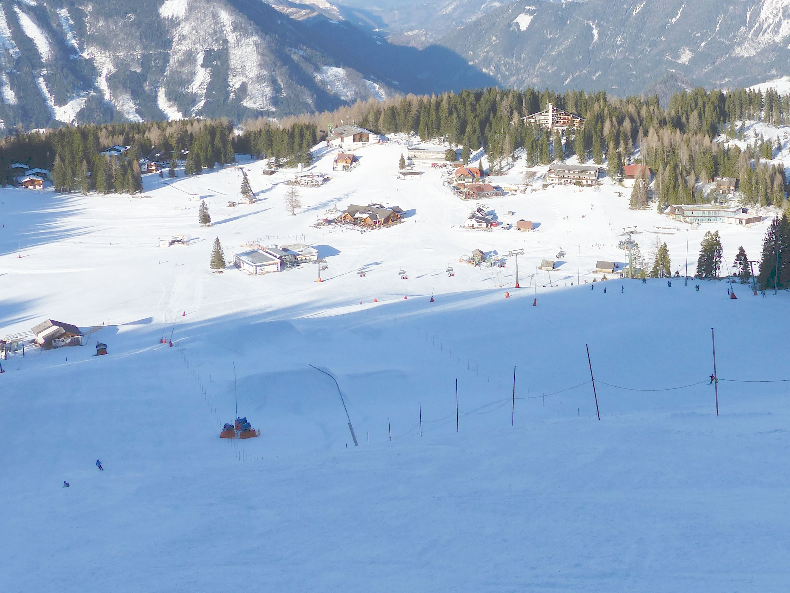The fun park in Hinterstoder is certainly one of the best in Upper Austria. It is located on the Hutterer Böden and is thus centrally located in the ski area. Right next to the park runs the Sonnkogel lift, so we can give plus points for the good accessibility. Freestylers can let off steam here on a length of 300 meters. Rails, boxes and kickers provide a varied setup. In addition, with the SnowTrail there is also a fun slope with wave run and steep turns.