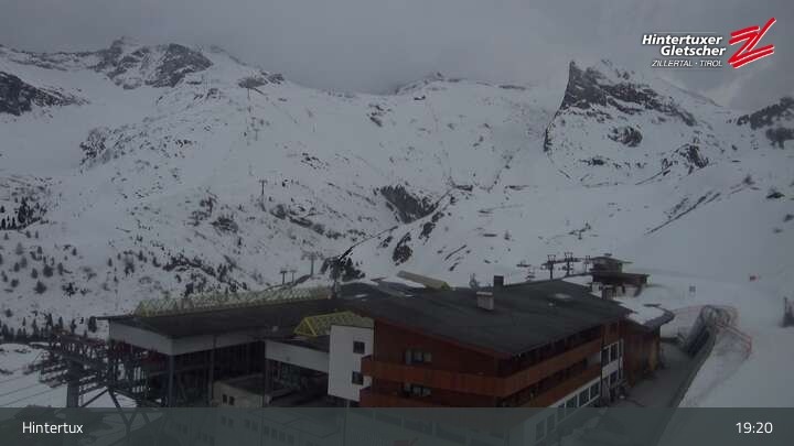 Archived webcam image showing Hintertux - Webcam Sommerberg on 12 Apr 2026 at 19:19 Latest