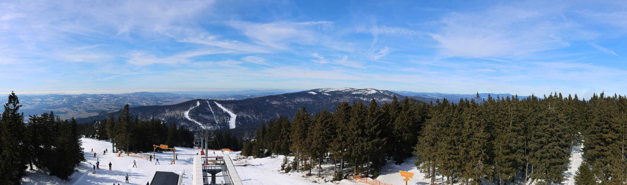 Panorama view from the top of the Hochficht-Chair over the Bohemian Forest.